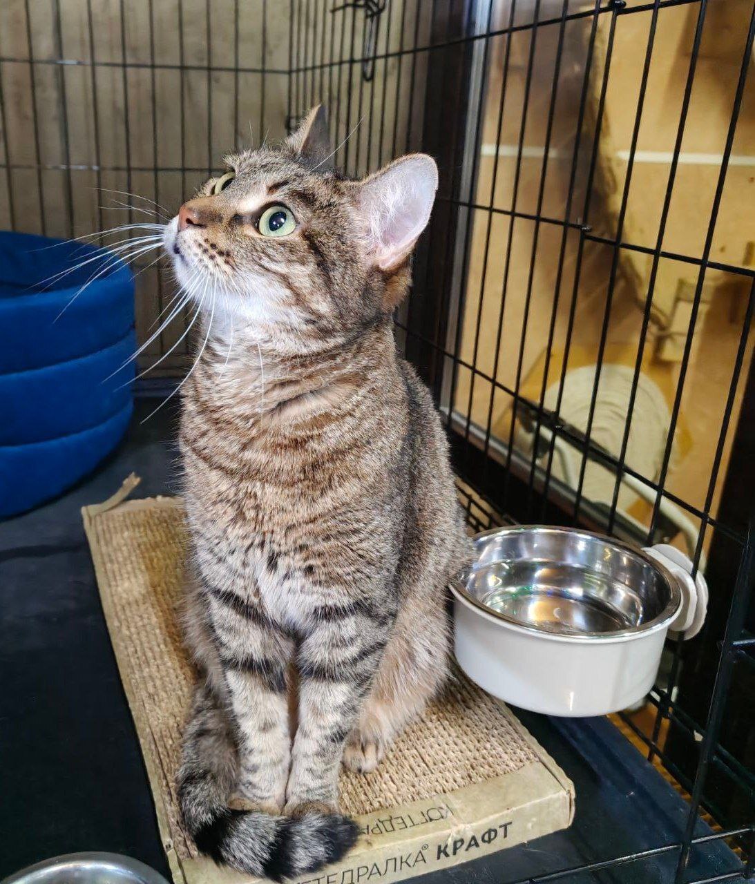 Некоторые сотрудники её боятся, потому что Травиночка очень ревностно относится к своим вещам, когда забирают её домик, лоточек, мисочку, она их не отдаёт) .