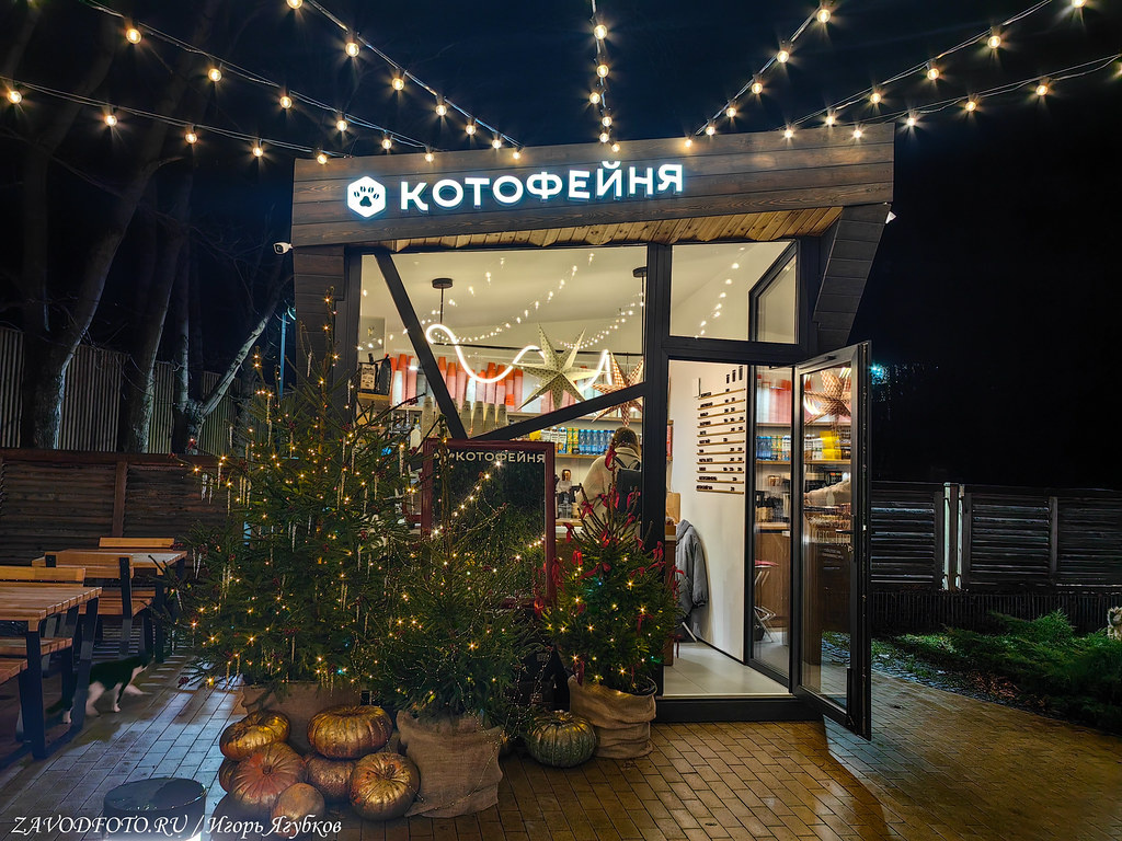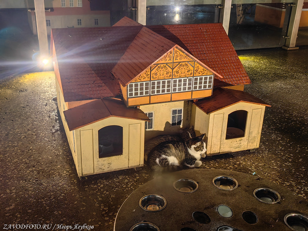 Тут же расположен сквер Котофейня. В нем живут уличные коты, причём в своих сказочных домиках.
