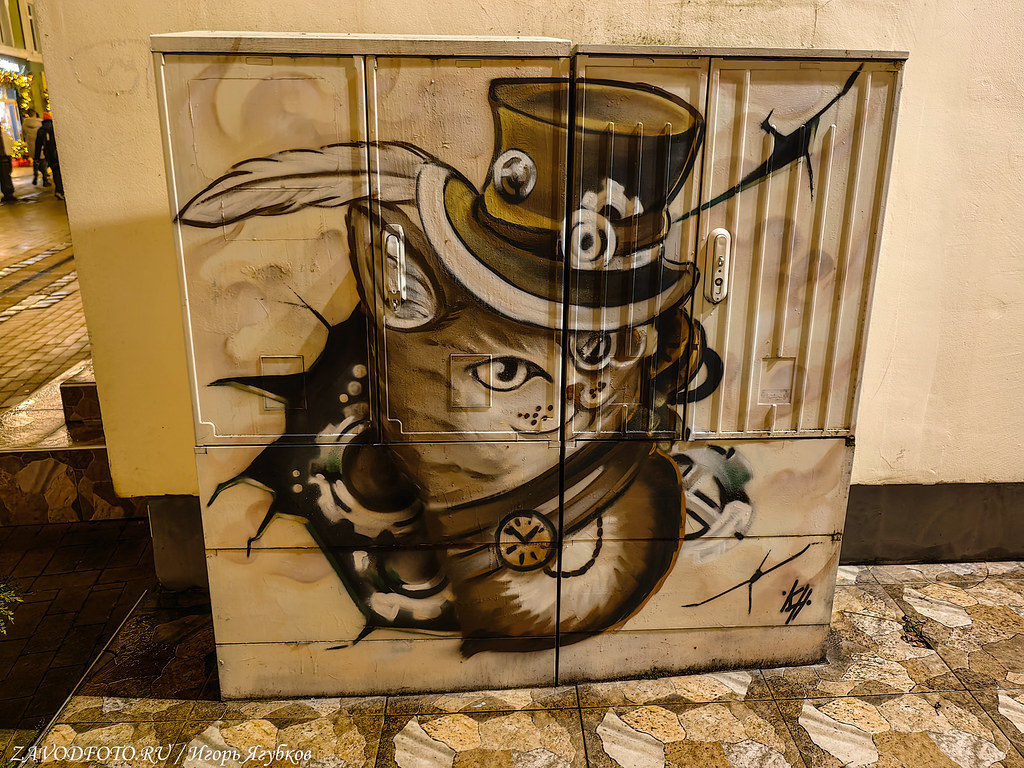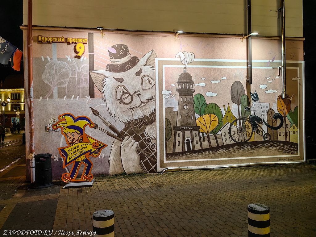 Кошки в Зеленоградске повсюду: на граффити, скульптурах, сувенирах и даже на светофорах, что не совсем обычно и радует глаз.