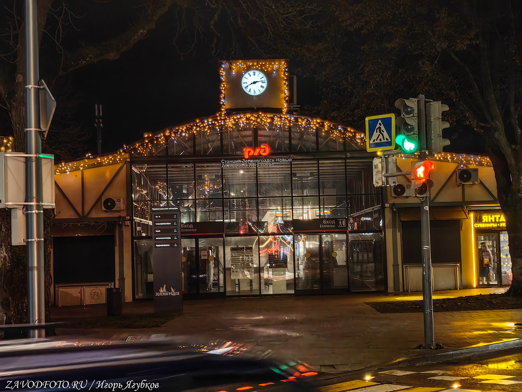 Железнодорожный вокзал. Зеленоградск - один из немногих городов России, куда можно доехать на электричке прямо к морю. Уже с вокзала слышен шум прибоя, а до пляжа - всего несколько минут пешком.