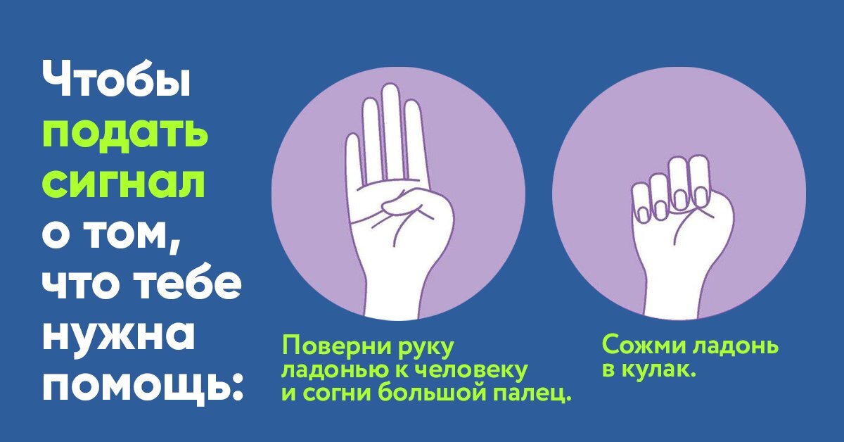 Чтоб пришла помощь, нужно скрытно от насильника показать это жест постороннему человеку.