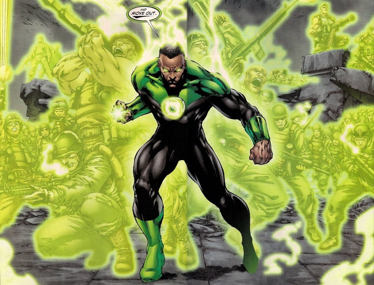 Главным Зелёным Фонарём киновселенной DC, судя по всему, будет не Хэл Джордан, а Джон Стюарт. Видимо, студия никак не может отойти от негативно принятого публикой фильма "Зелёный Фонарь", хотя, повторюсь, я не увидел в нём ничего плохого. Именно Джон будет членом Лиги Справедливости, и именно на него будет делаться упор, по крайней мере, до 2020 года, когда появится Корпус Зелёных Фонарей и, соответственно, огромное их количество.