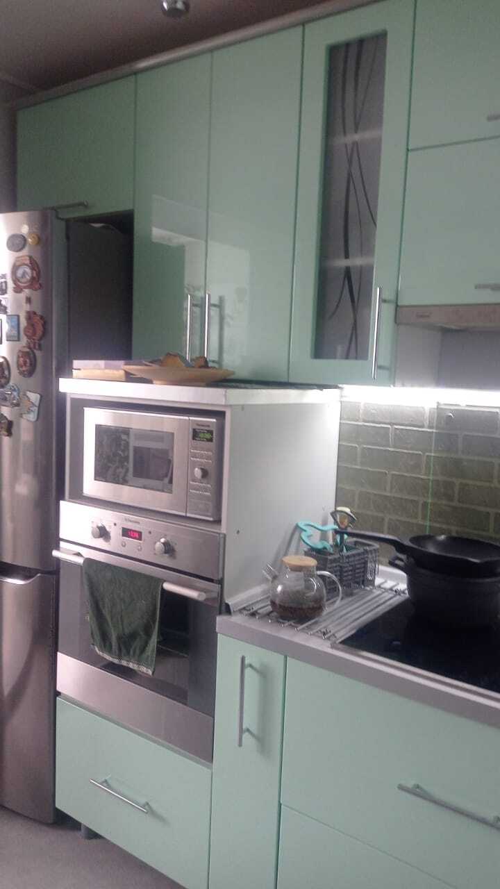 Изначально кухня была зеленого цвета и за долгие годы использования этот цвет просто надоел хозяйке.