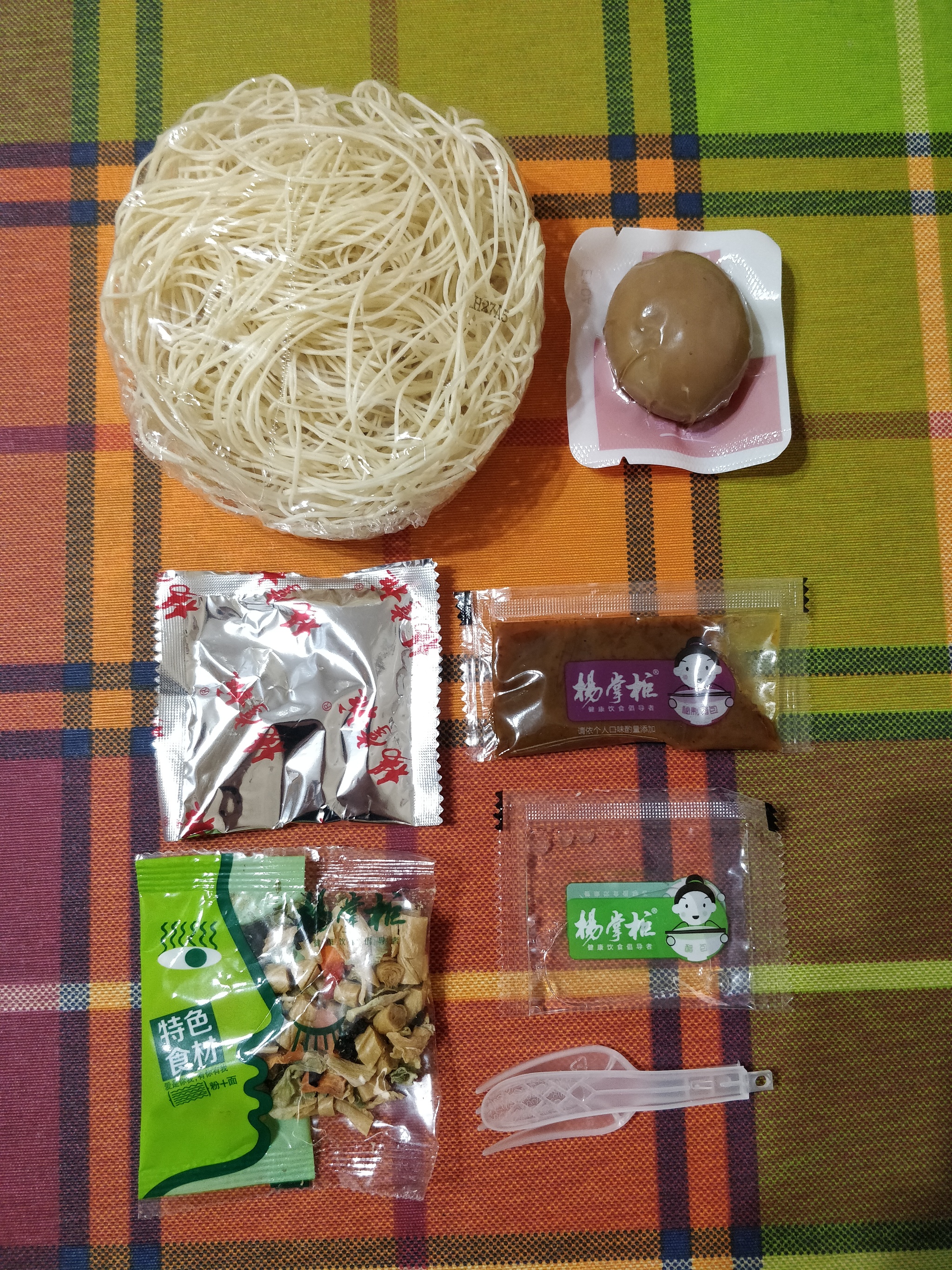А внутри нас ждут сама лапша, вилка, овощи, суповая основа, соус, уксус и маринованное яйцо (!).