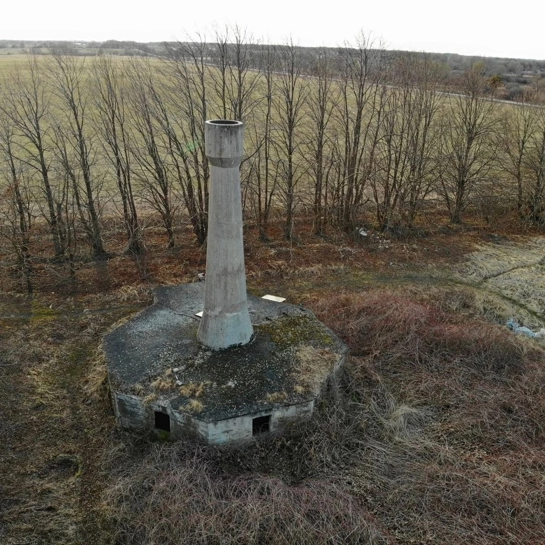 Разумеется, сами энергоустановки канули в небытие, а вот 12 метровые железобетонные опоры с солидным основанием, до сих пор украшают местные поля. Некоторые местные жители и туристы, даже ошибочно полагают, что это трубы крематориев... 🙈 В годы второй мировой войны, башни успели послужить войскам Вермахта, наблюдательными постами, а потом, доставшись победителям, они послужили наблюдательными постами уже советской армии, но в итоге и её были оставлены и заброшены.
