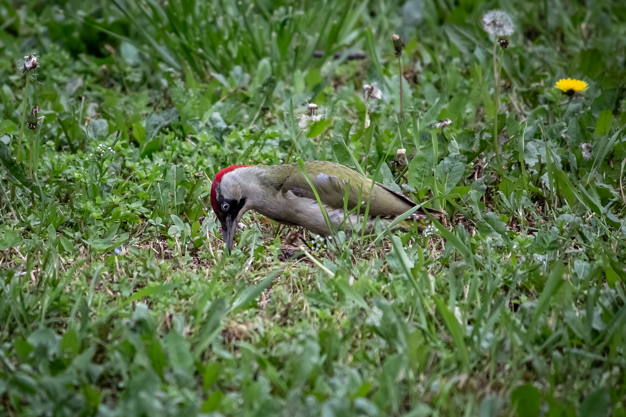 Встреча со следующей нефантастической тварью, обладающей ярко-красной головой аки у дракона и крыльями почти кислотно-зелёного цвета, была полной неожиданностью для нас. В Комсомольском парке города Пятигорска мы наткнулись на это существо, ковыряющееся в траве. Как поётся в детской песенке: "Представьте себе, зелёненький он был". Я до этого момента не знал, что дятлы бывают зелёными. Потому пока один фоткал непонятное пернатое существо, второй гуглил "зелёных птиц Ставропольского края".