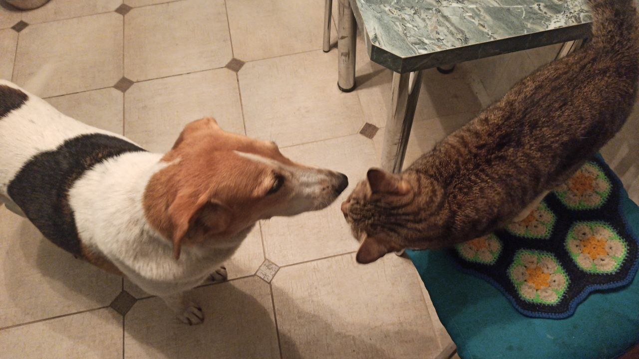 У нас жил кот ещё, его благо взяла бабушка, собаку к ней к сожалению не получится пристроить.