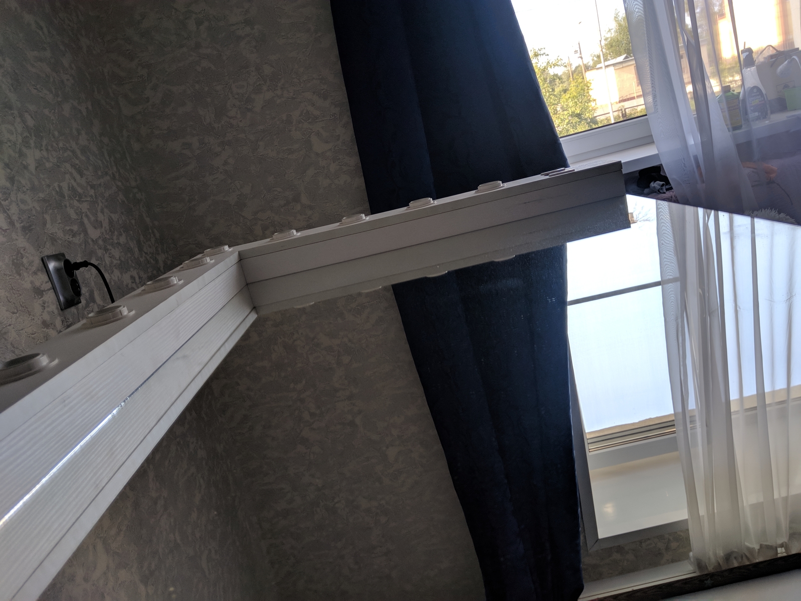 В итоге все это скрепил между собой и на всякий случай к стене ибо зеркало очень тяжелое, с размером конечно перегнул)) но при расчетах казалось что 120х40 как-то маловато будет. Это очень большой стол, не надо так :-D осталось допилить ящик, все это мне обошлось в 6500 рублей, сделал за 2 дня