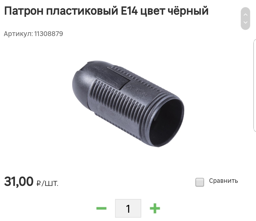 Купил патроны E14 - 18 шт. по 31р Почему не выбрал патрон E27 - они дороже, плюс лампочки дороже, да еще и сложнее найти не сильно мощные лампы под такой цоколь (это важно, иначе будет слишком ярко). Купил вилку. Уже на тот момент понимал, что зеркало будет темного цвета, по этому патроны и вилку купил черную. Купил уголки, саморезы, кабель для вилки. (в конце будет полный список всего и цены). Фото в коментах, не влезает в пост.