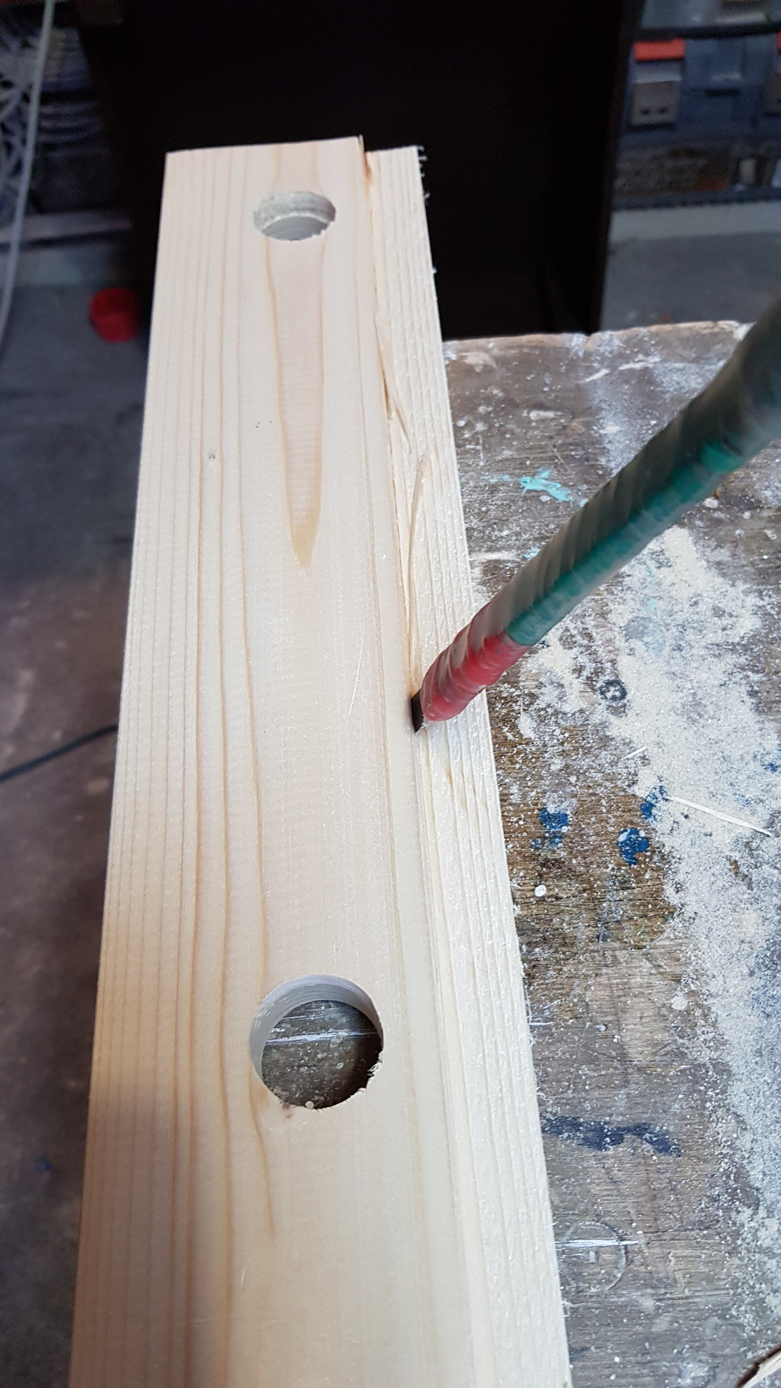 Под купленные патроны (внешним диаметром 27.5мм) было куплено перо на 28мм. В заранее рассчитанные места были сделанные сквозные отверстия на сверлильном станке.