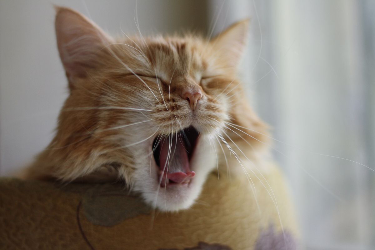 Можно дать ему например карандаш, но в 100% случаев под рукой его у вас мгновенно не окажется. Коты зевают быстро.