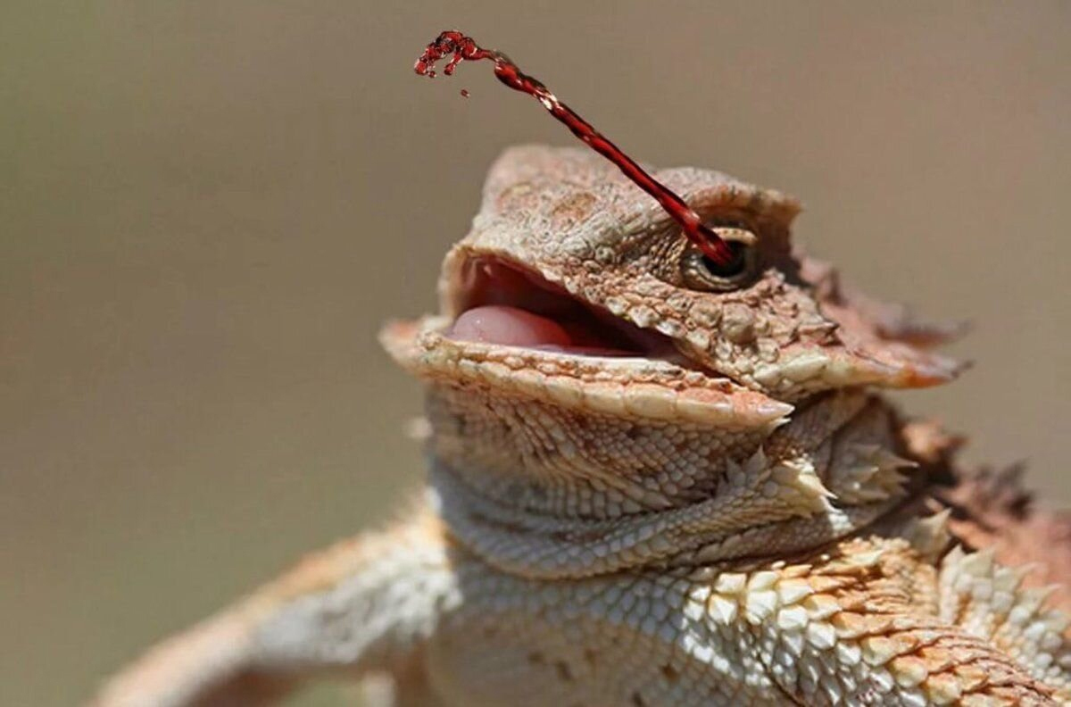 Делают они это не сдуру, просто чего-то испугавшись – тут никакой крови не напасёшься – а только в крайнем случае. Обитают такие ящерки на юго-западе США и на севере Мексики, и в этих регионах пруд пруди желающих полакомиться маленькой 10-сантиметровой рептилией, так что способов спасти свою чешуйчатую шкурку ящерка знает немало.