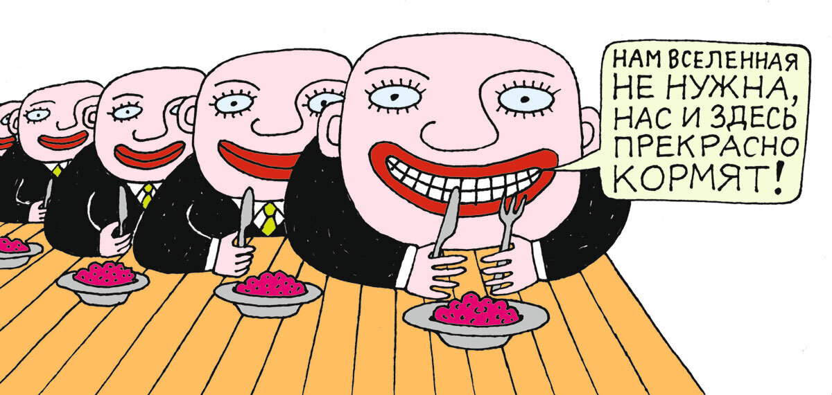 В книжке «Незнайка на Луне» эта картинка изображала заседание большого бредлама. Большой бредлам, Римский клуб, Бейдельбергский клуб – по сути одно и то же