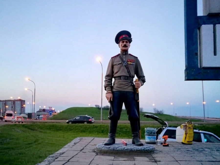12 pawell13 Жаль не в Джугбе... 4 года назад На въезде в Каменск-Шахтинский стелу теперь охраняет фигура казака. Она чуть выше человеческого роста и внимательно смотрит на всех въезжающих. Казаки Памятник Длиннопост 1 1 Ещё 0