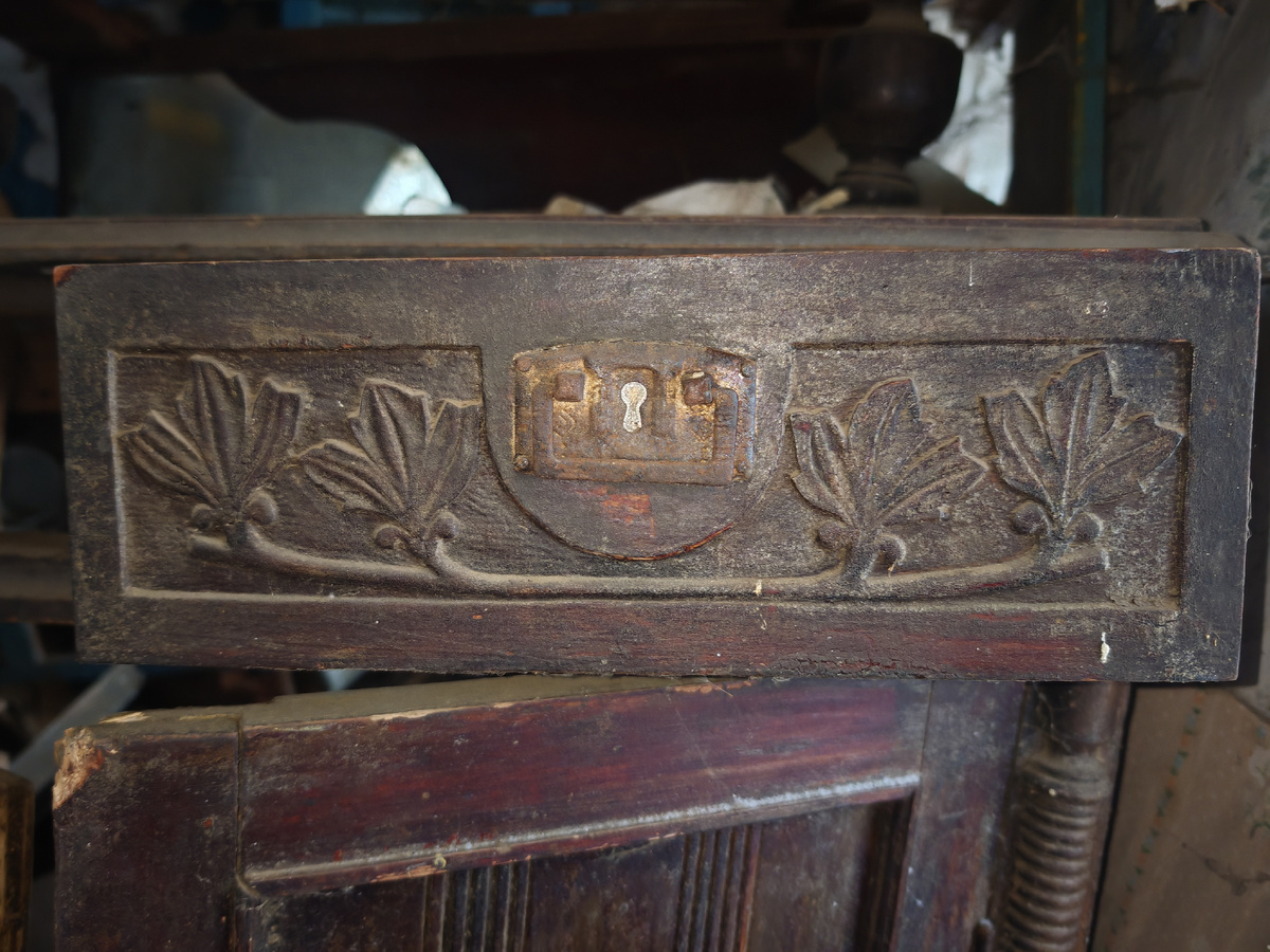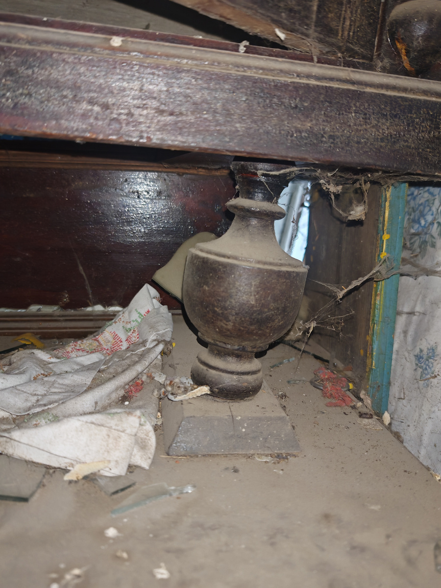 По итогу, решил забрать верхнюю часть буфета. Так-же нашел пару находок по мелочи. Стеклянное основание для керосиновой лампы: