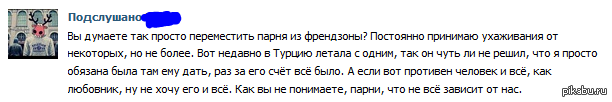 463 MastodonT Жалко парня. 11 лет назад Некоторым неловко, когда за них парень расплачивается по мелочи, а кто-то считает, что в Турцию свозить - это ерунда. Девушки Тег для красоты Нахлебница Френдзона Подслушано ВКонтакте Не будьте такими
