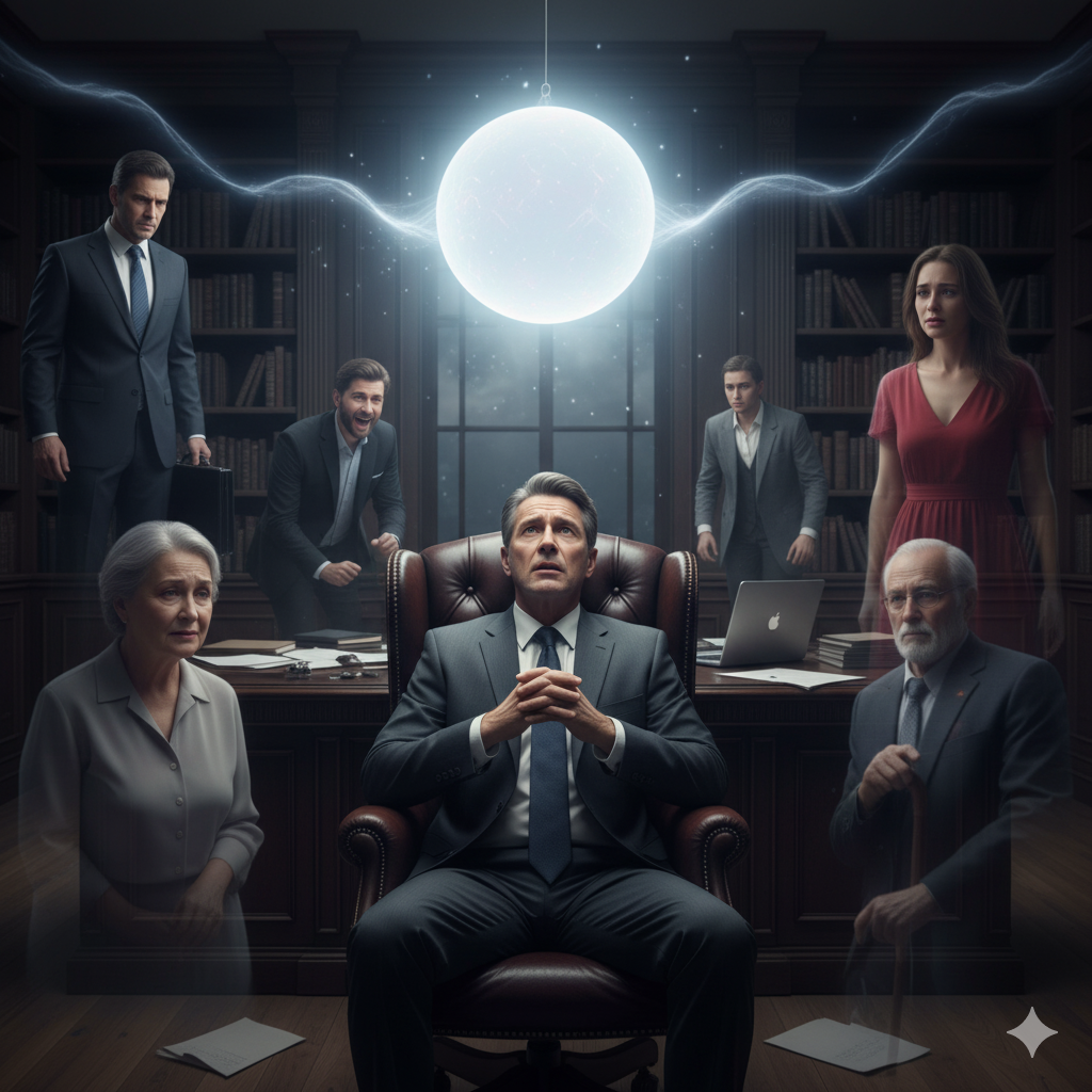 где отражался его собственный уставший силуэт, задал вопрос в пустоту: