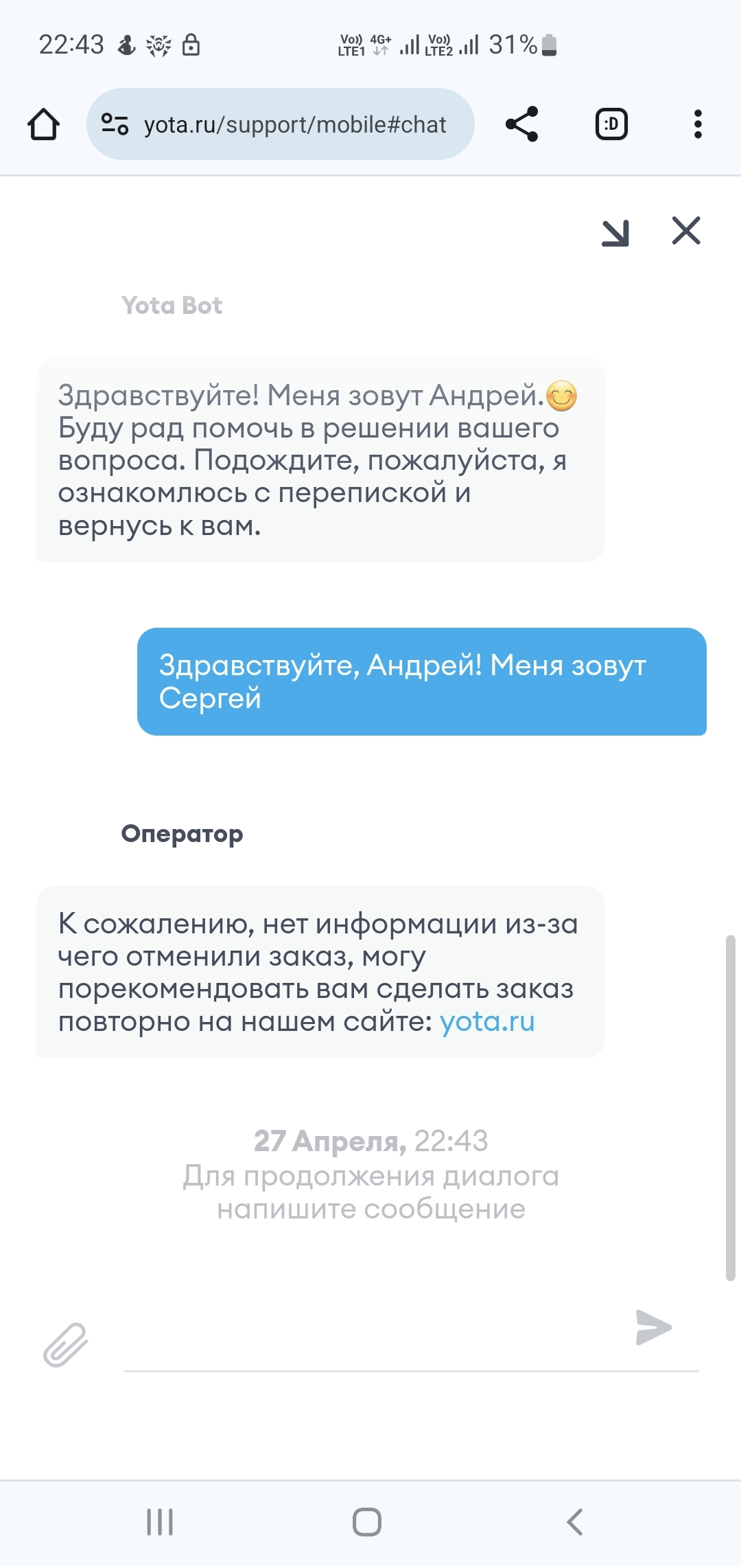 Далее, уже разозленный, пишу в поддержку Йоты, где ответом было иди нахуй, дружочек "мы не знаем, попробуйте ещё раз".