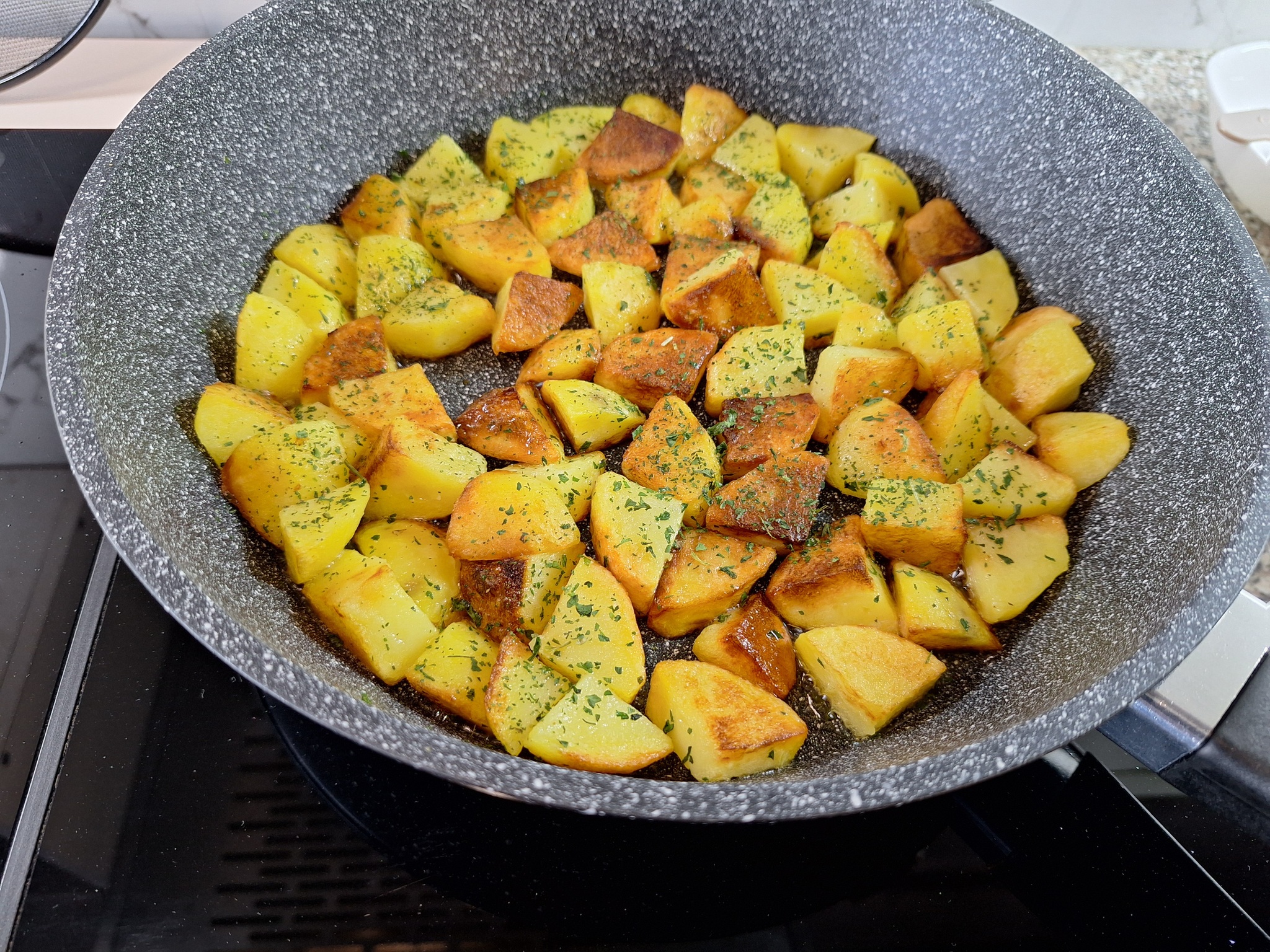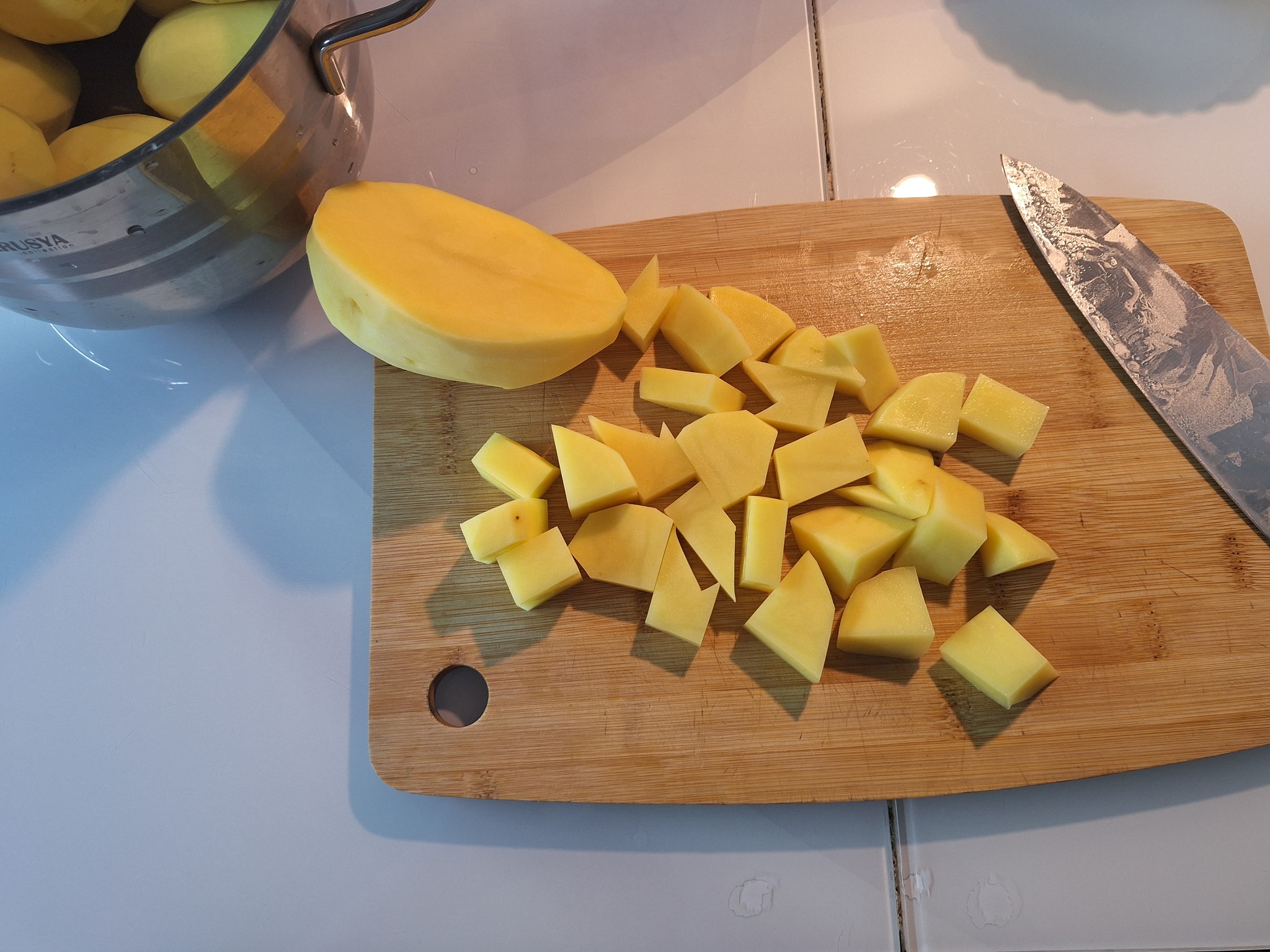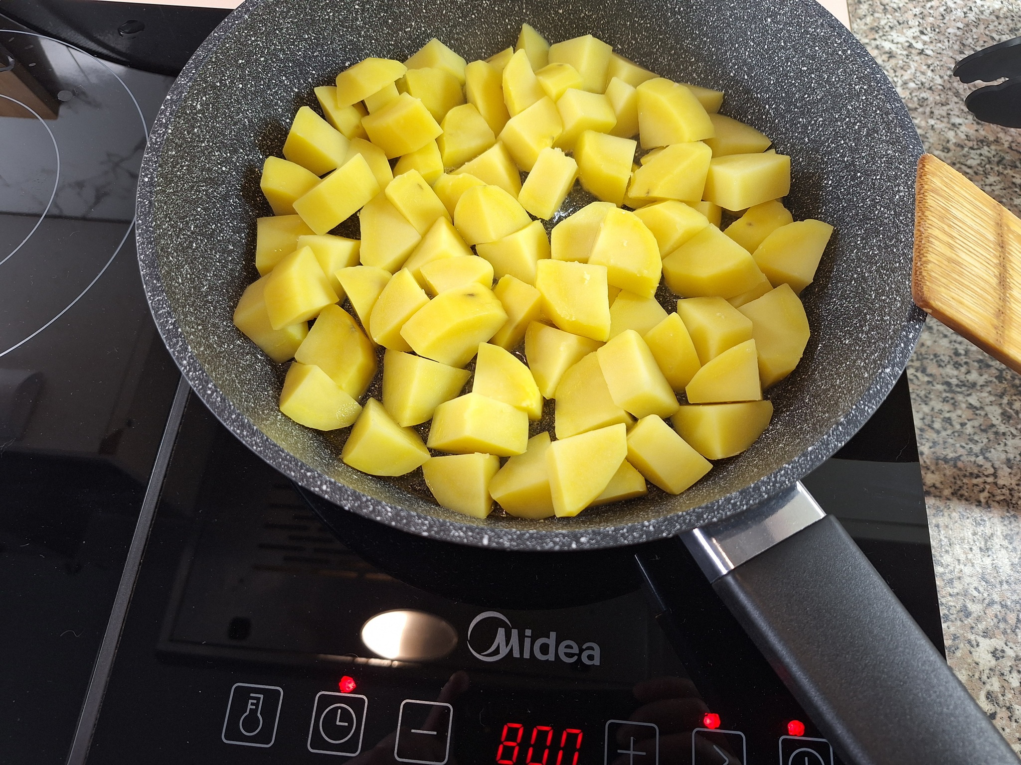 И на этом месте, я решил, что немного поварю картофель перед жаркой, чтобы не сильно запариваться на готовность внутри, сконцентрировавшись только на корочках.
