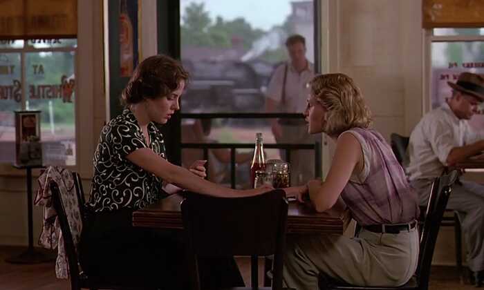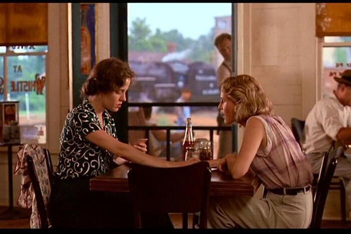 Картина делит историю на два временных отрезка. Современные 90-е и что-то около 60 лет назад. В настоящем героиня Кэти Бейтс мотается в больницу слушать рассказы Нинни, а та уже отправляет нас в свою молодость, где мы имеем возможность наблюдать за непростой историей отношений Иджи и Руфь. Это стоит иметь в виду, у нас будет по сути два сюжета.