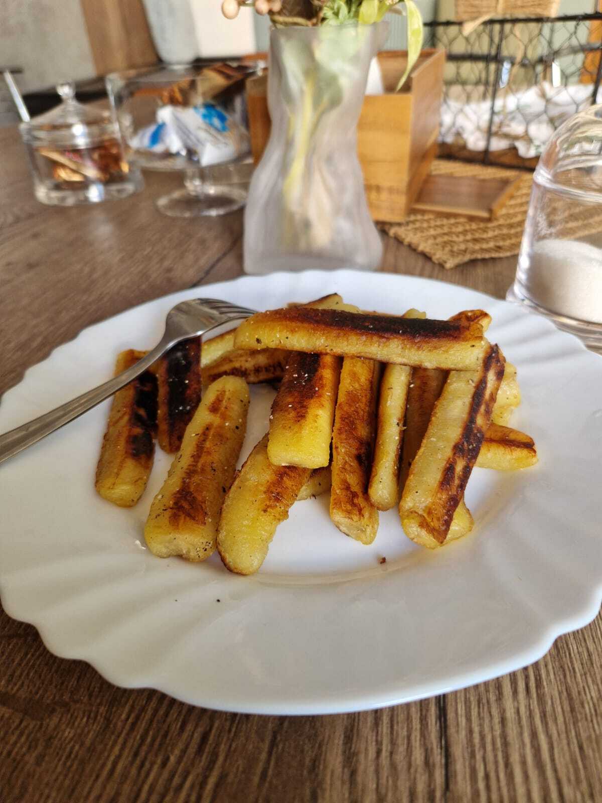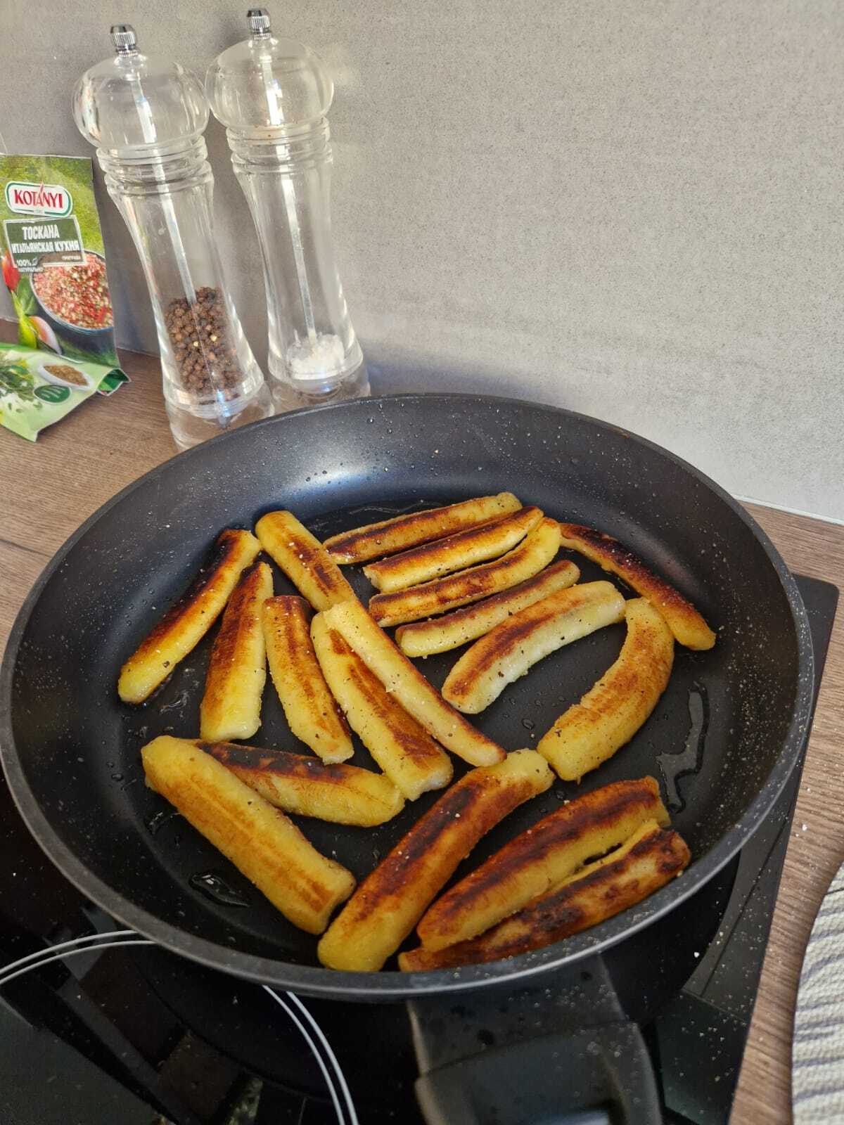На вкус как жареная картошка, только с банановой ноткой. Готовится быстро. Совсем не сладкое, но бананы д.б. максимально зелёными.
