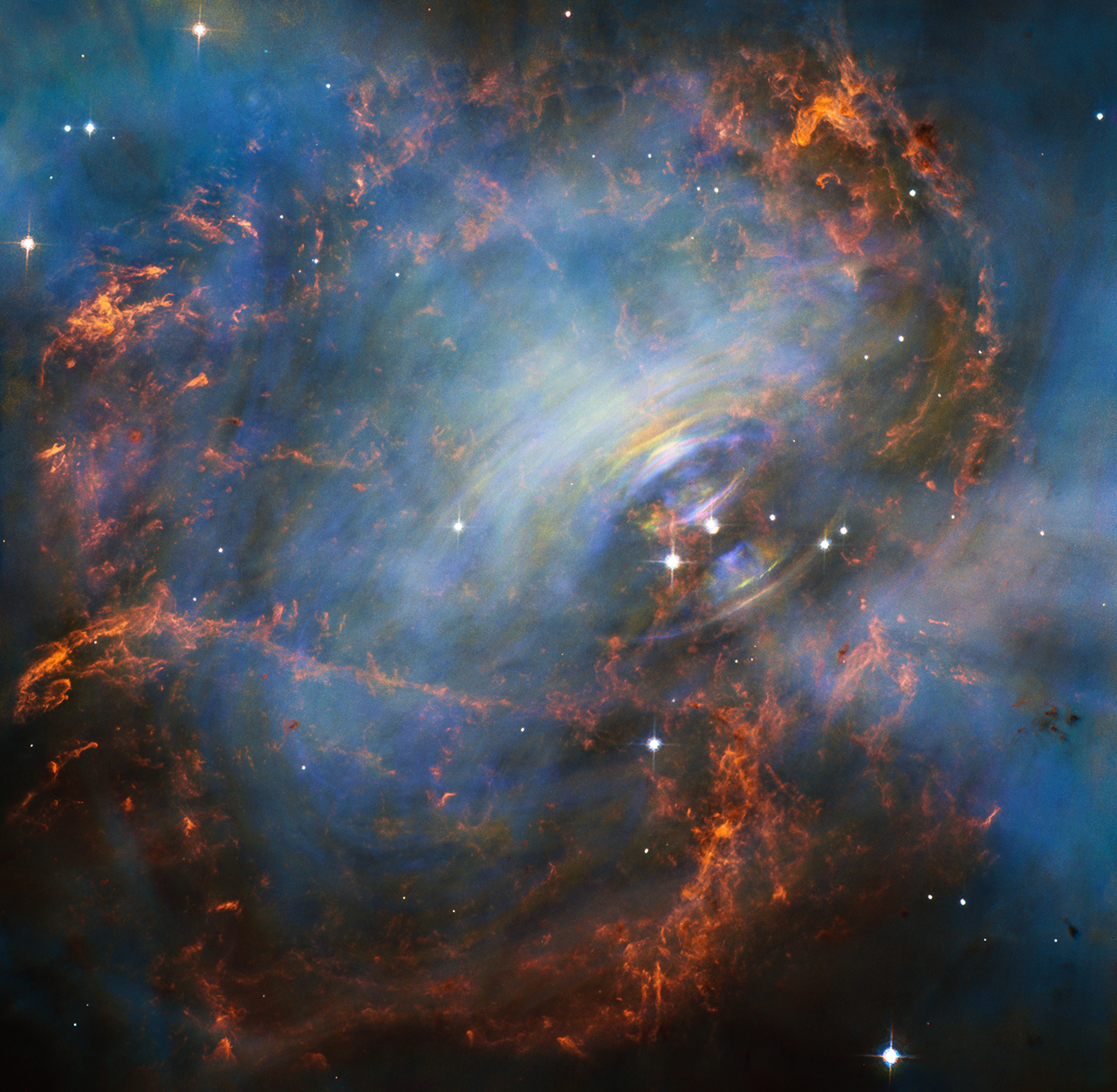 внутренняя часть Крабовидной туманности, где поток частиц с экватора нейтронной звезды PSR B0531+21 врезается в окружающую туманность, формируя ударную волну