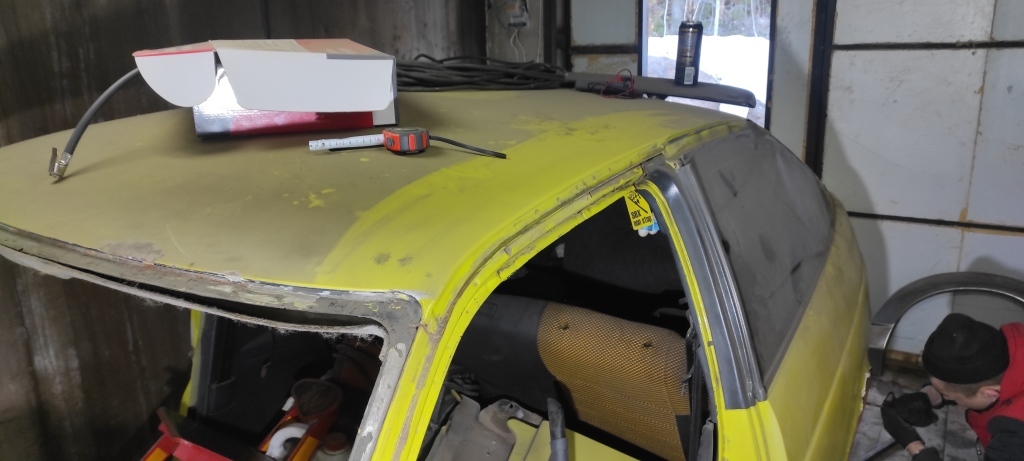 Работа понеслась постепенно купили печку обогреватель и перевезли машину в гараж