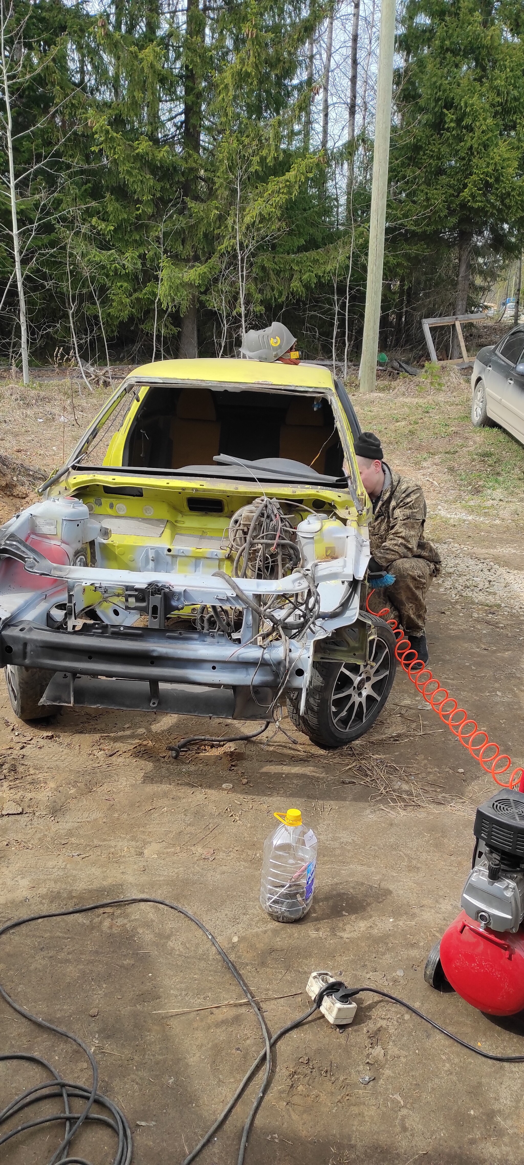 Вот так мал по малу продвигалась работа по восстановлению желтка своими силами. Сразу скажу нет он не отдавал машину в автосервис на время, не просил помогать. Зная что в один прекрасный день он все равно доделает Желток и будет на нем рассекать улицы города.