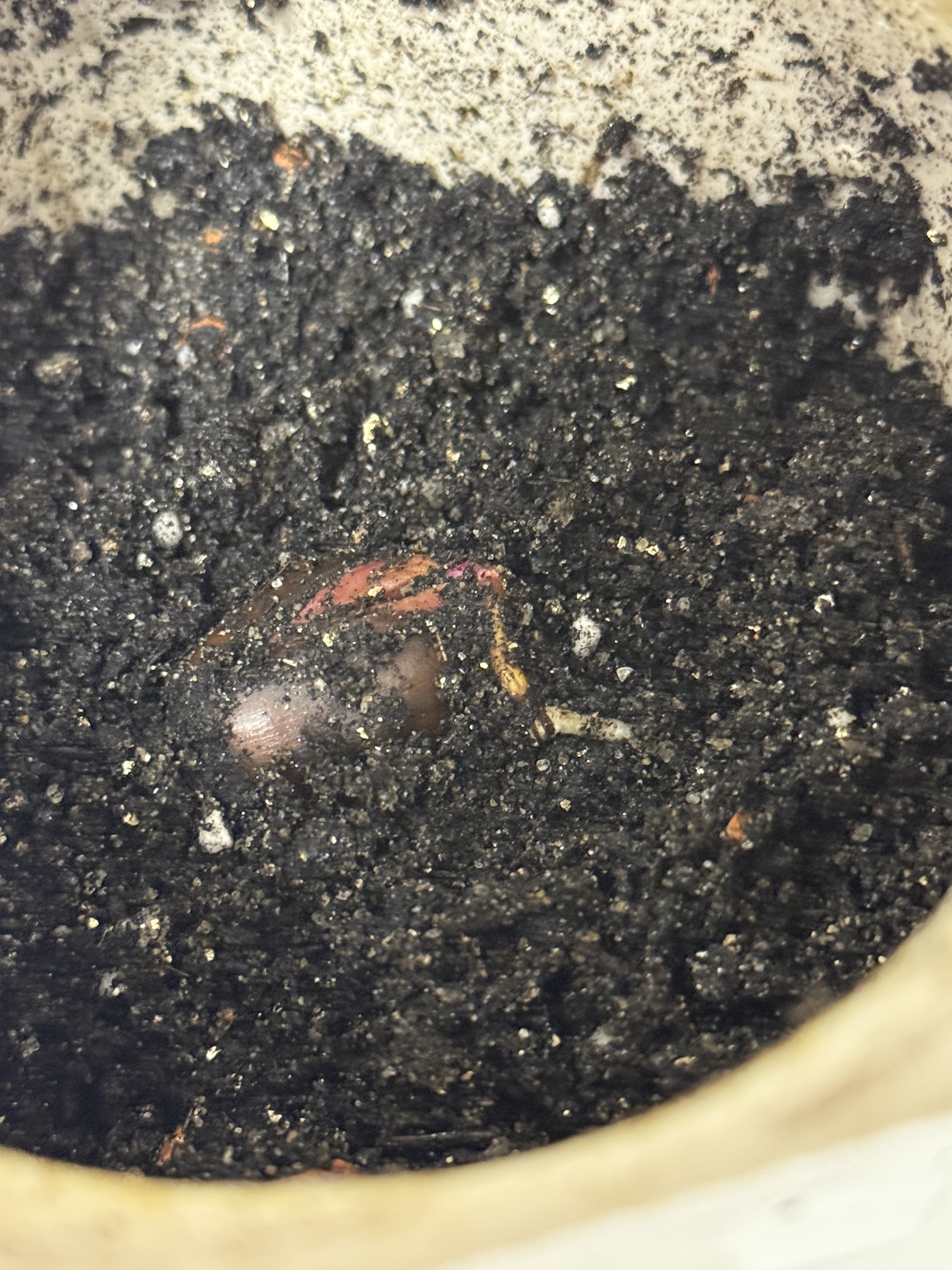 Пророщеный желудь, без стратификации, был посажен на 2 см вглубь в рыхлый грунт, после увлажнения утоп глубже (совет гпт). На форуме прочитал, что надо на 1/3 в землю, выдергивать из земли не стал, так как росток уже есть и уходит вниз, просто убрал лишнее