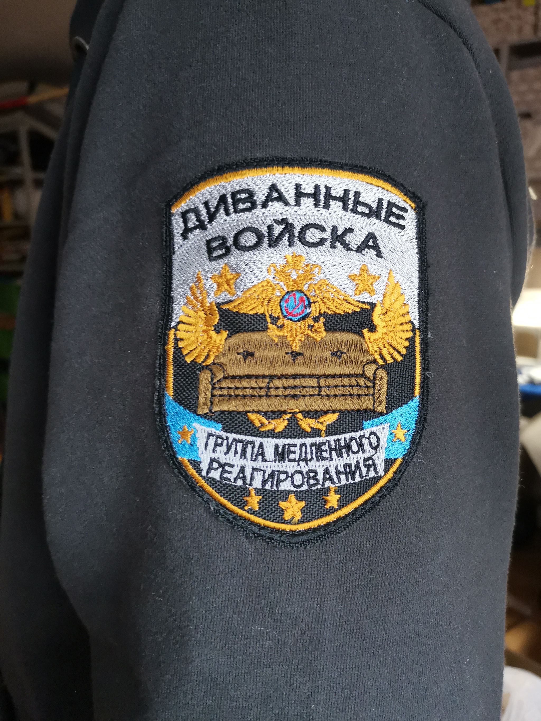 Материал: футер с начесом, капюшон глубокий. Имеет на рукаве знак различия.