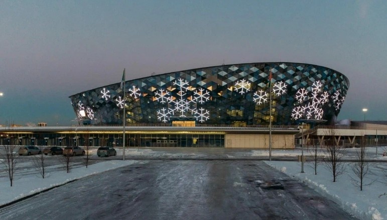 Позавчера я два часа смотрел на это здание именно с такого ракурса. Знаете, что это? Сибирь Арена в Новосибирске. Его строили несколько лет. Строили - строили и наконец построили. Хоккей там проходит вроде, не знаю, не фанат.