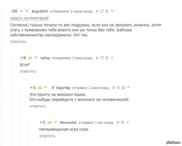 Не женский язык, а просто непонятная хуйня. Неумение выразить мысль. Написал бы мужик - сказали бы хуйня, а написала баба так сразу "женский язык".