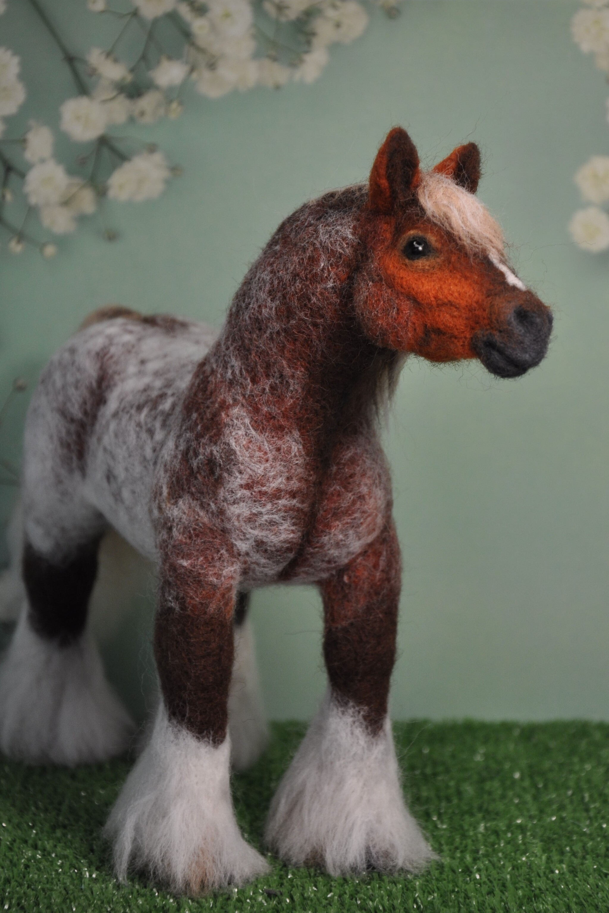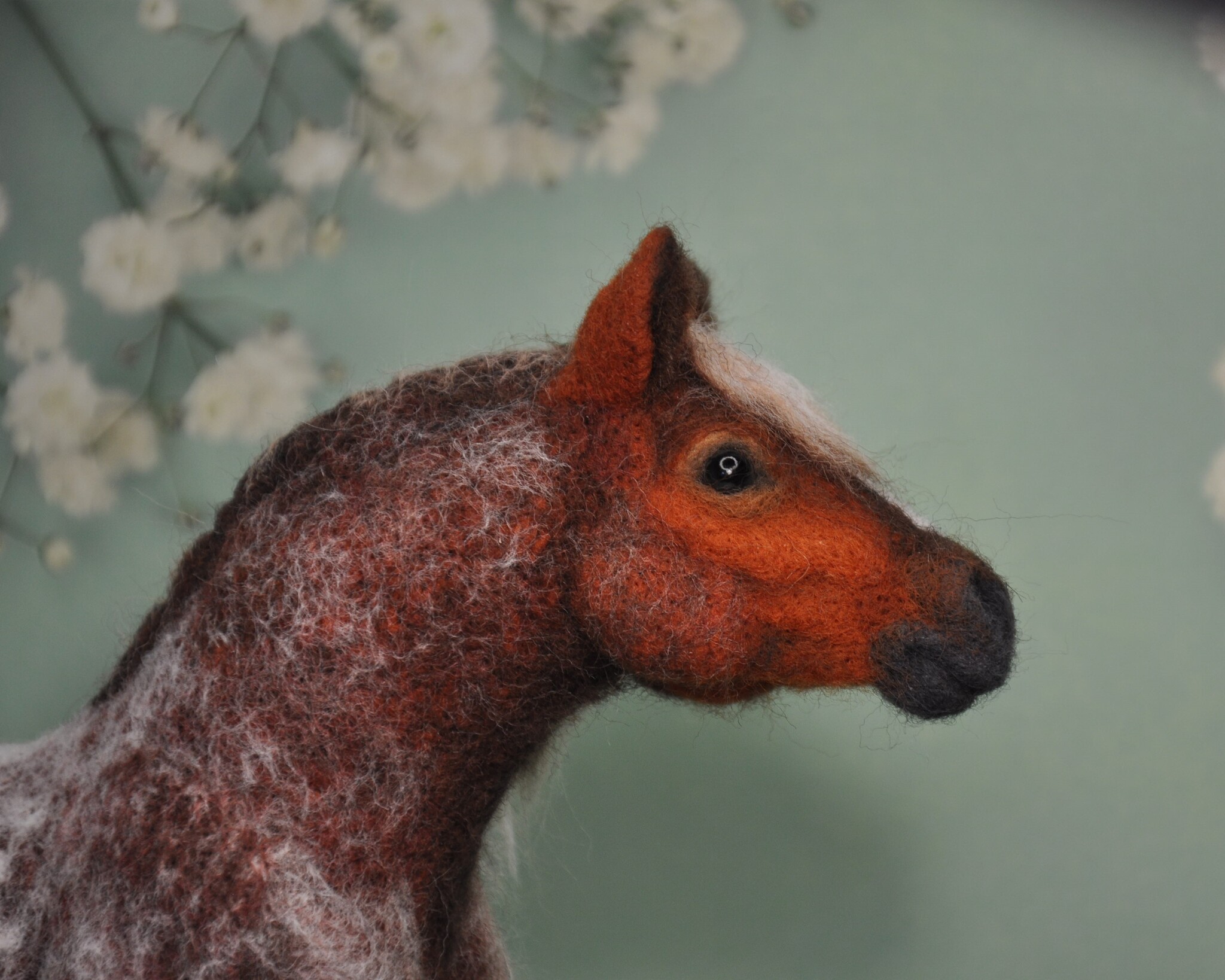 В работе пришлось применять довольно сложное наслоение разных оттенков шерсти, чтобы осуществить задуманное, да и грива с хвостом исполнены в новой для меня технике.