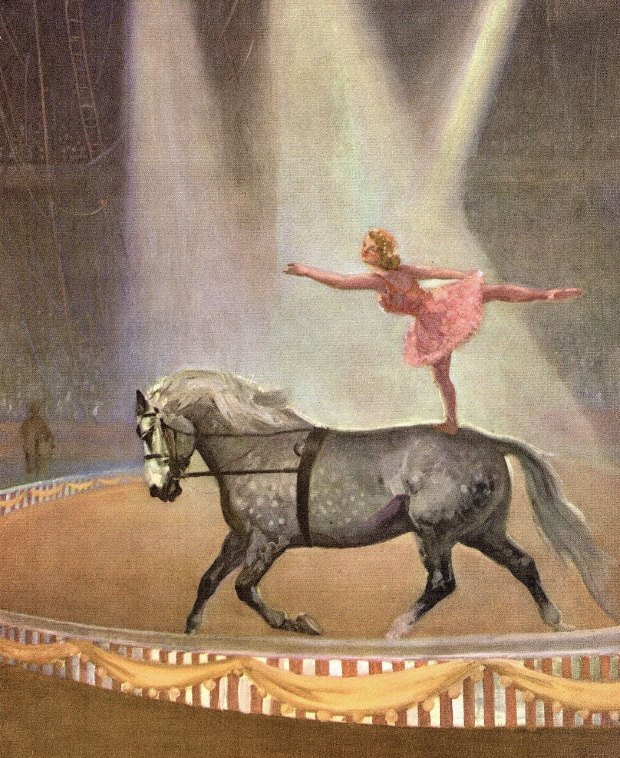 Они подъехали к цирку. Были куплены билеты на самые дешевые места. Поклонники провели Учителя на высокую галерку и они все уселись на скамейку. Он произнес радостно: "Ба! Да это хорошее место. Я смогу хорошо видеть представление отсюда". Показывались всевозможные виды мастерства. Лошадь скакала по круговой дорожке, над которой с интервалами висели большие железные кольца. Цирковая наездница, англичанка, стояла на одной ноге на спине лошади, и когда лошадь пробегала под кольцами, она прыгала сквозь них, всегда приземляясь одной ногой на спину лошади. Лошадь проскакала полный круг, и женщина ни разу не соскочила с лошади и не потеряла равновесия.