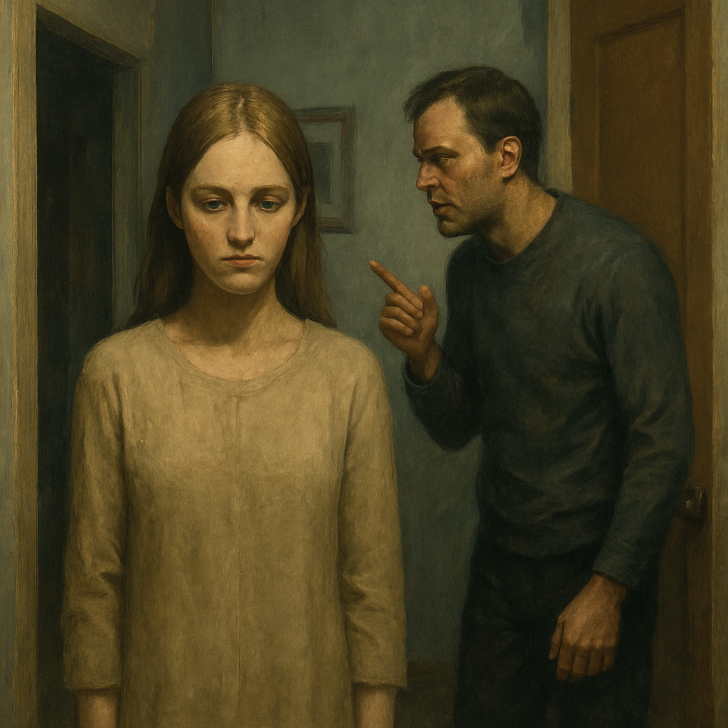 — Вчера он на меня… давил. Я пыталась поговорить спокойно, — сказала она и спрятала лицо в ладонях.