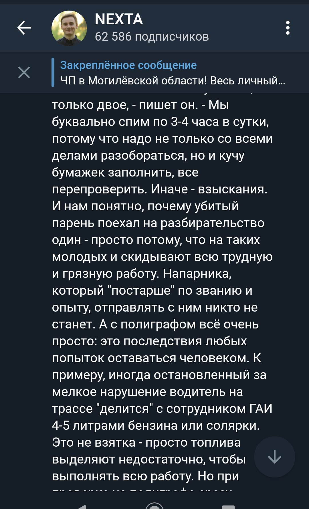 27 brestskij Жертвы системы 6 лет назад Вот что пишут в Телеграмм про белорусскую систему МВД, на фоне вчерашнего похищения и убийства лейтенанта ГАИ, 1996 г.р. в Могилеве, 🇧🇾 Система МВД Республика Беларусь Telegram Длиннопост