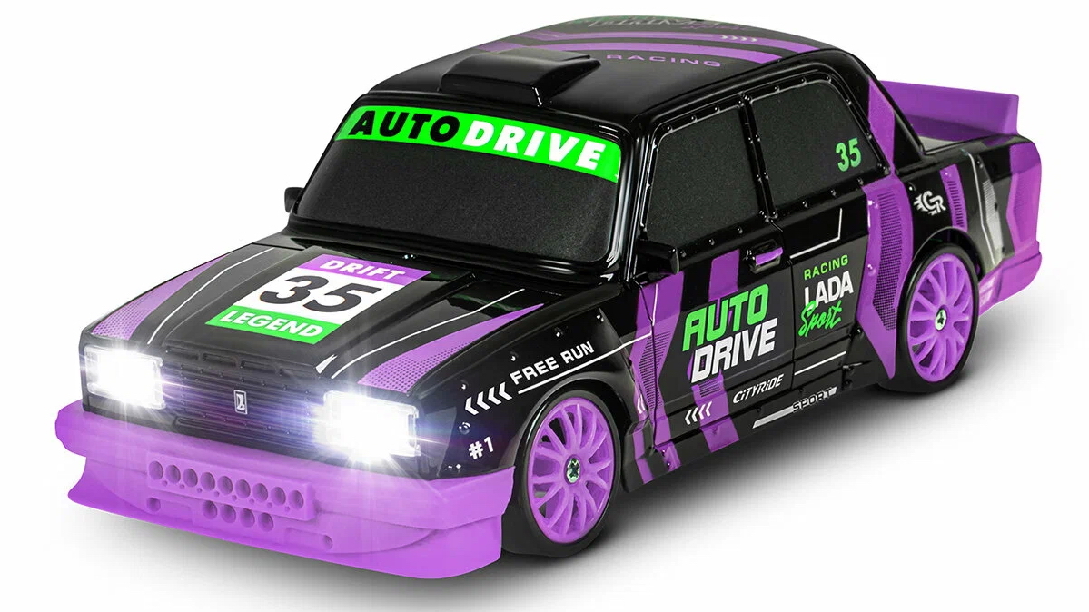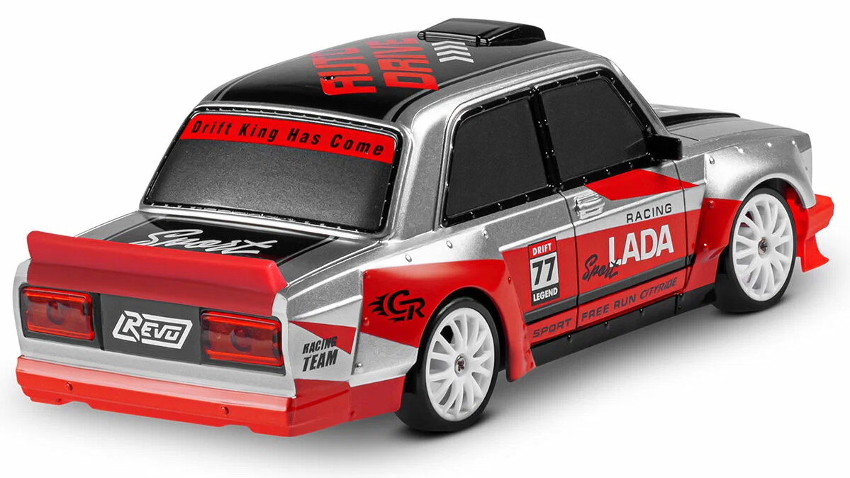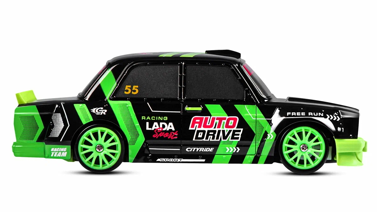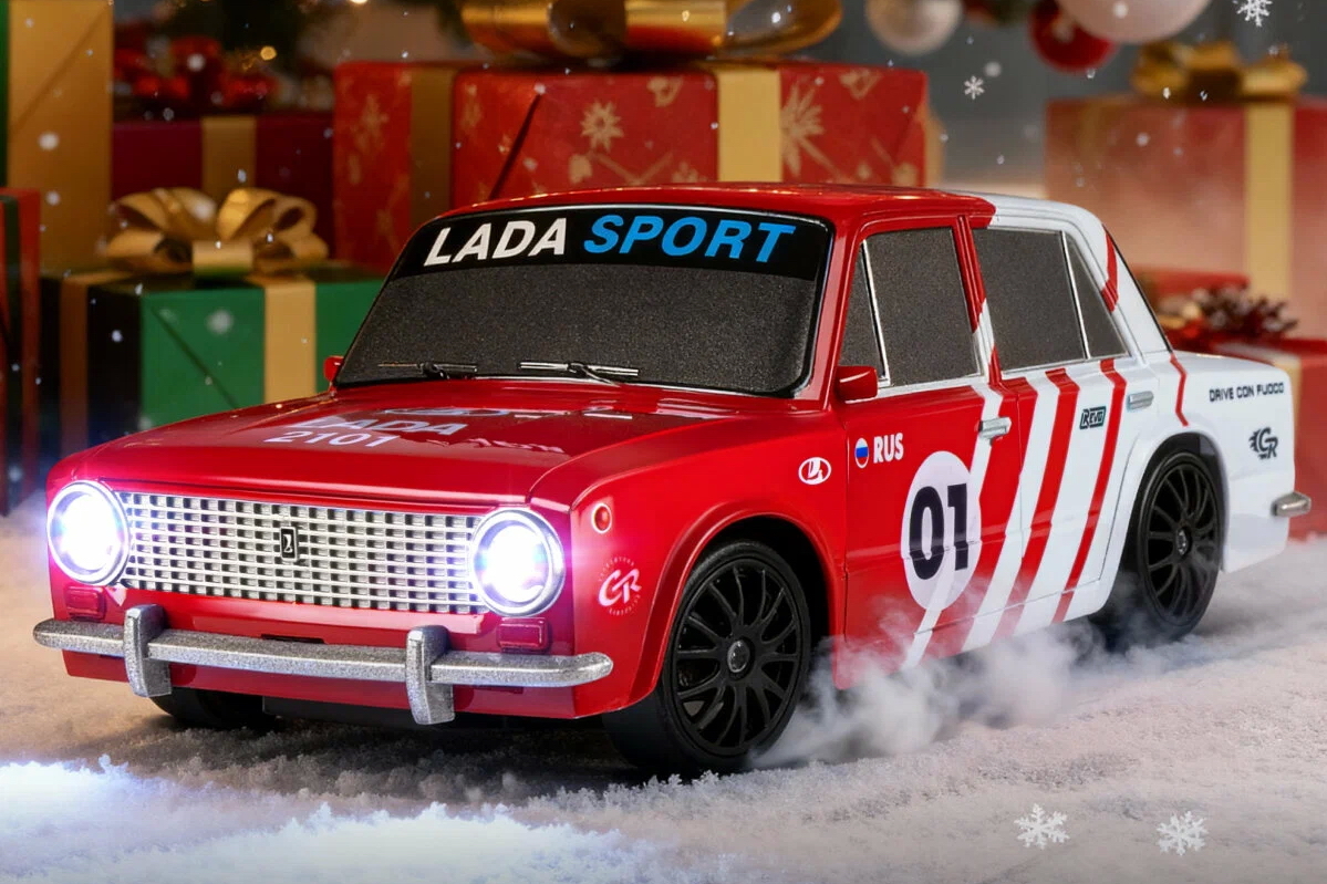 Цареградцев говорил, что для зимнего дрифта на Жиге хватит 400 тыс рублей. Оказалось, можно зайти и с более скромным бюджетом. Правда, в масштабе 1:24. И с радиоуправлением :) Да, есть целая серия машинок в дизайне народных моделей – и «заточенных» под дрифт. Причем сделано – по официальной лицензии Lada.