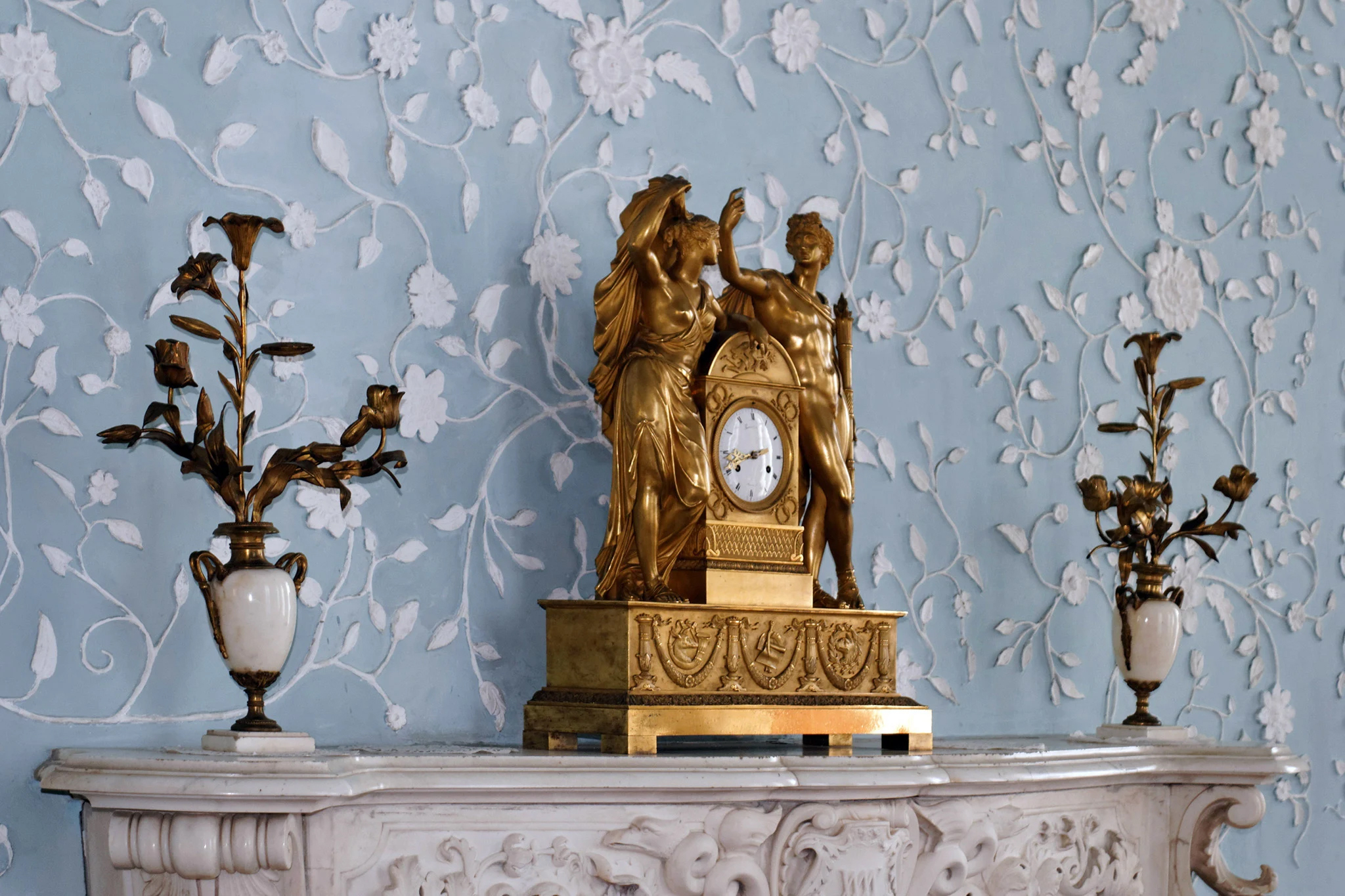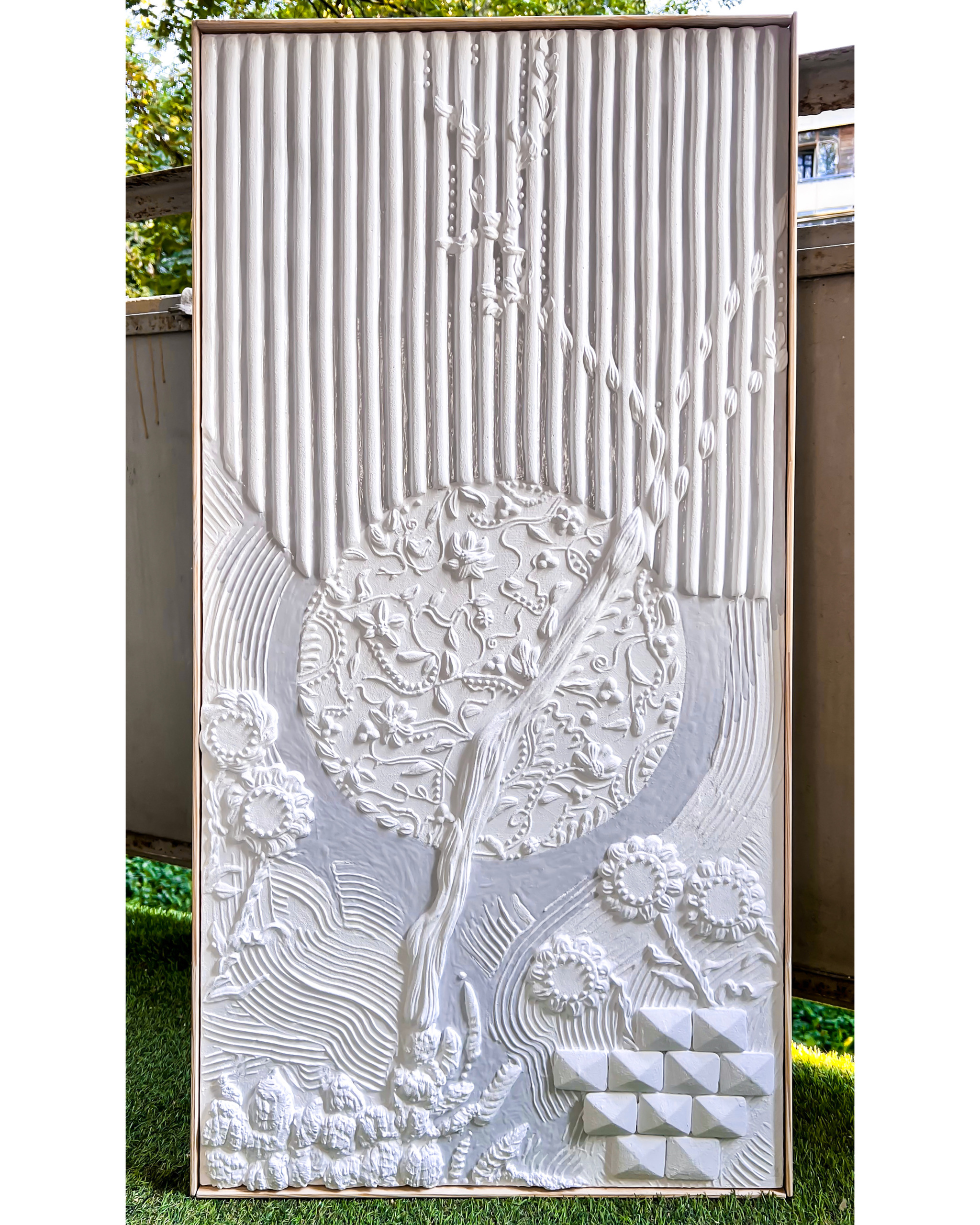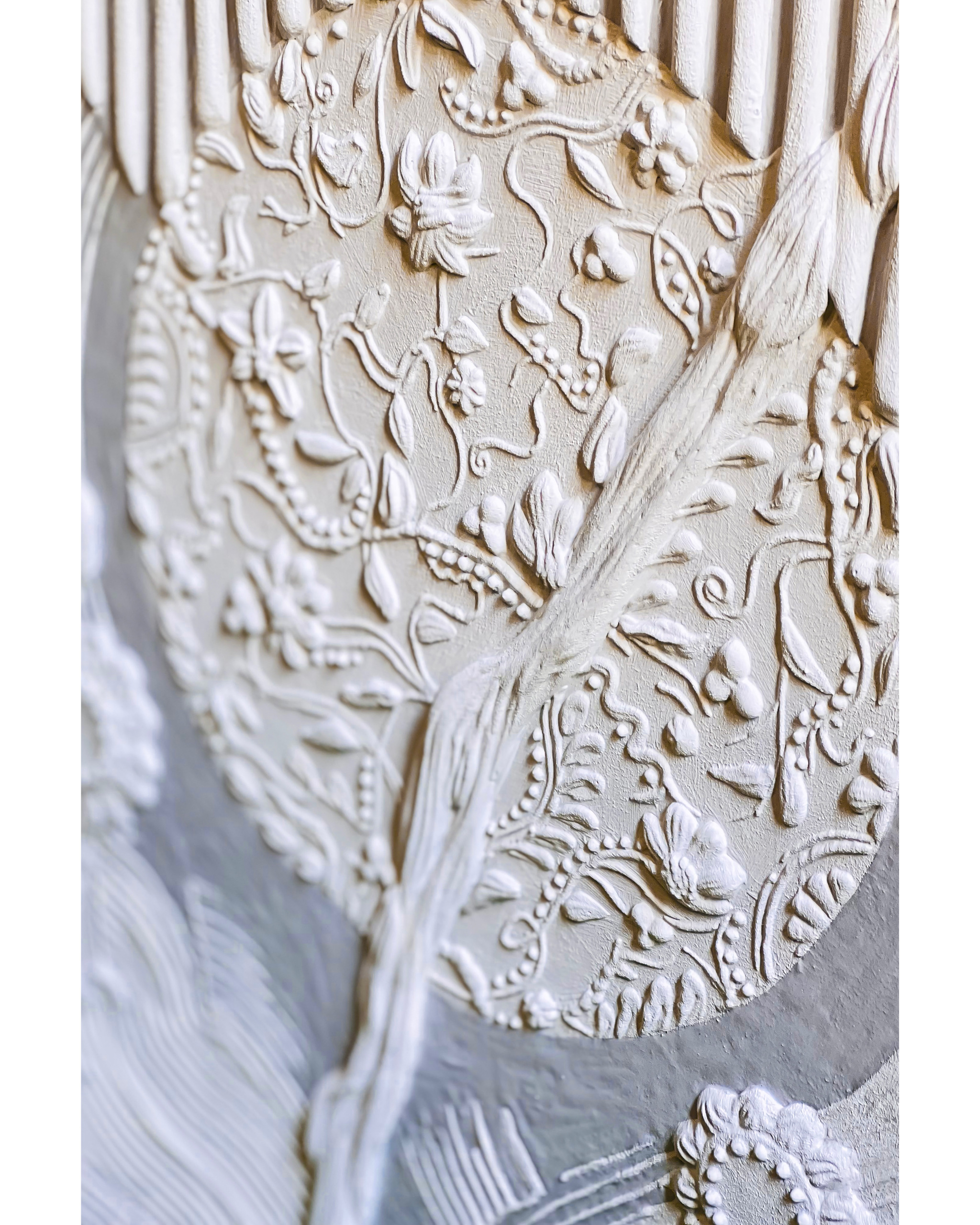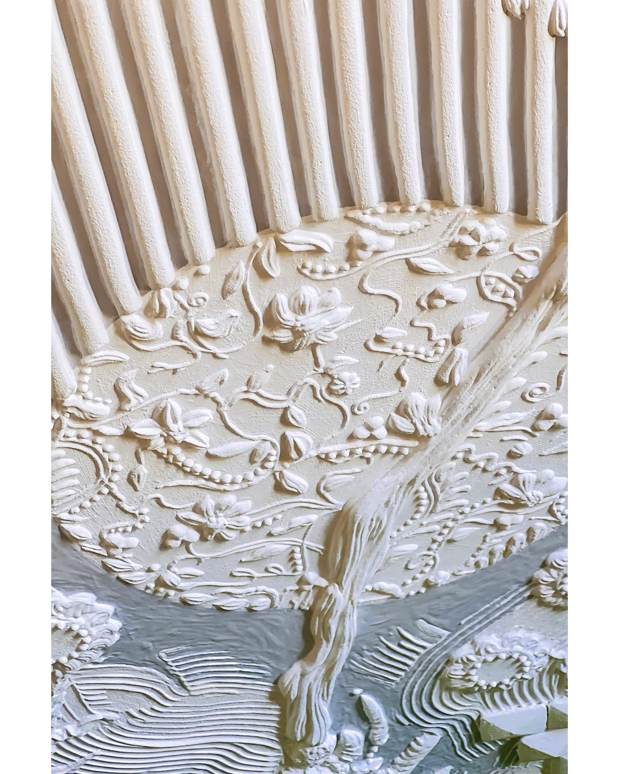 В ход пошли шпатели, мастихины, пальцы, локти, гипс, остатки шпатлевки и замес краски с прошлого нового года. Рожок и насадки для декорирования тортов появились у меня в угаре, в бреду, не помню когда. Перед глазами мерцал нежно-голубой в белых цветах потолок Ливадийского дворца.