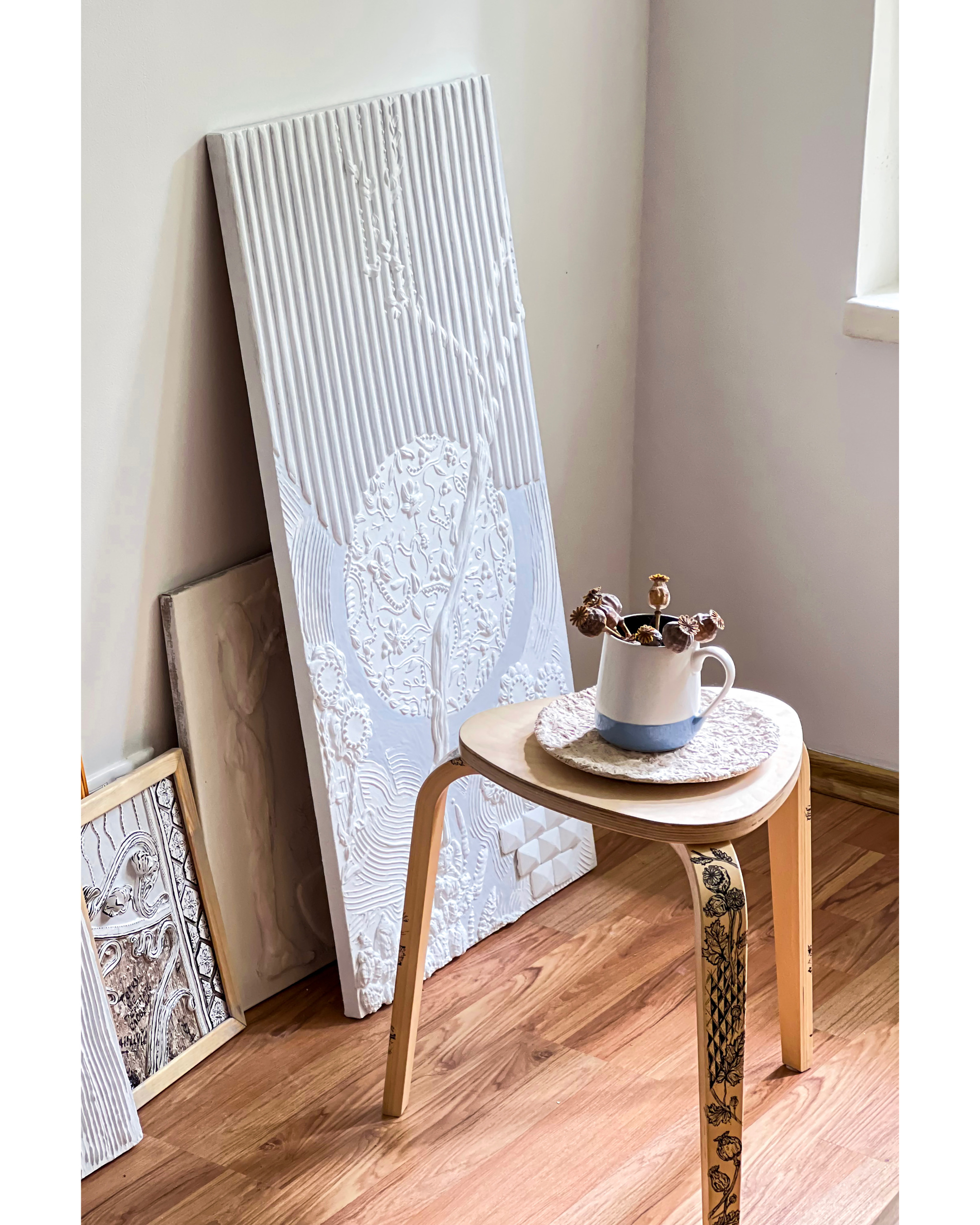 Где-то в этот момент я начала подозревать, что монументальная живопись меня избегает, махнула рукой и взяла себе дело по силам. Начала ремонт. Неделя в пыли и обрывках газет - и шпатель стал как-то удобно лежать в руке. Шпатлевка оказалась не липкой и текучей, а живой и мягкой. Наждачки стало уходить меньше, остались лишние листы. Ремонт закончился, я начала сублимировать на холст.