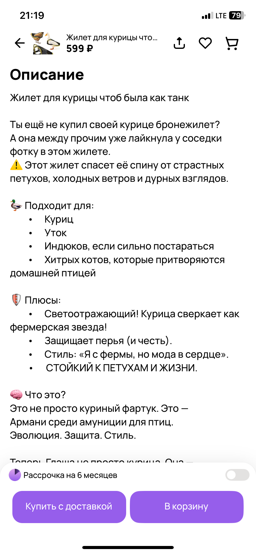 9 user10016149 3 месяца назад Жилет для курицы чтоб была как танк Позабавило, реальное объявление ))) Курица Юмор Объявление Защита Длиннопост 2 Ещё 0