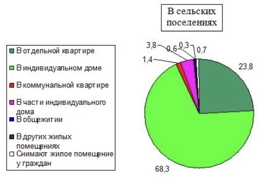 83,3% городских и 92,1% сельских семей жили в отдельной квартире или индивидуальном доме.