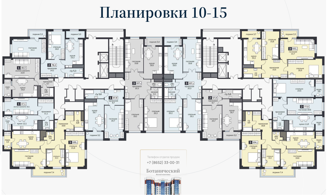 В ЖК "Ботанический-2" застройщик предлагает востребованные типы планировок: