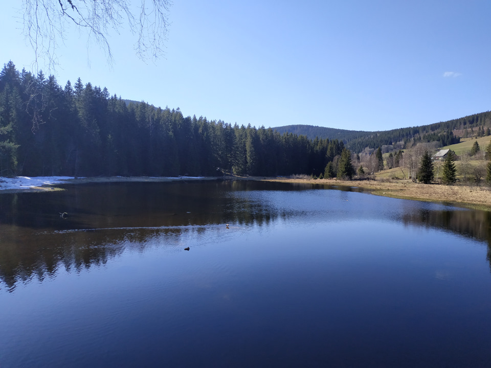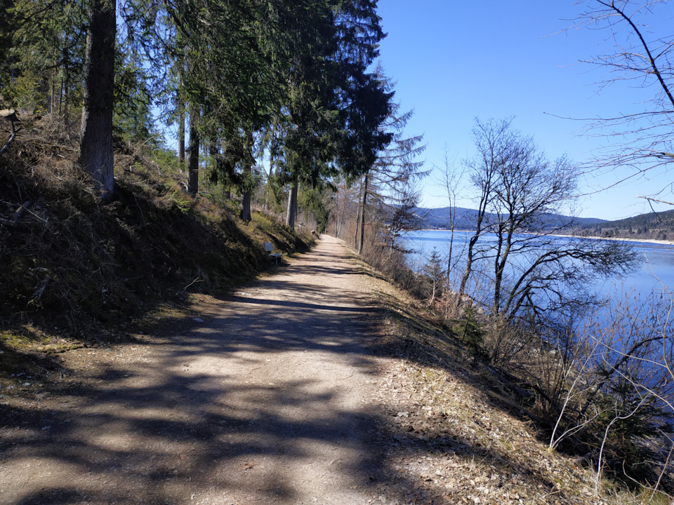 Далее поехали на парковку рядом с Шлухзее. Вид из окна на озеро: