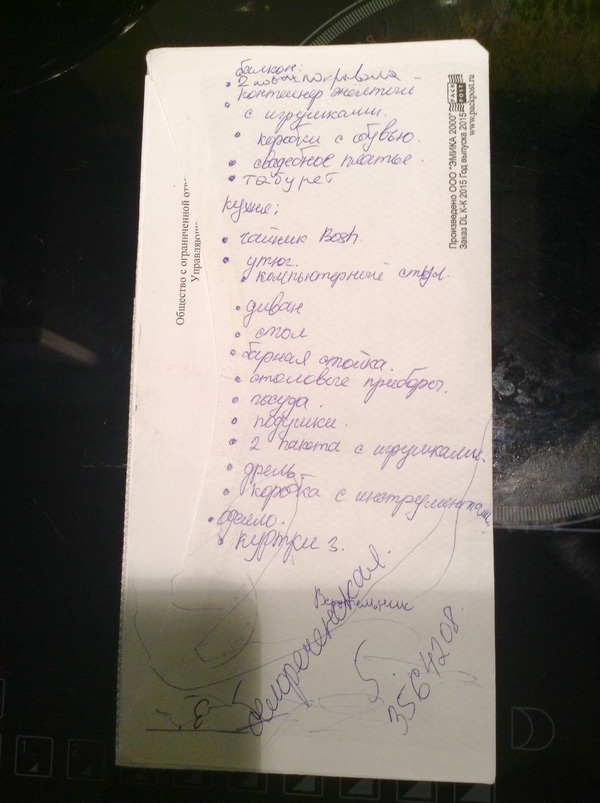 Дальше мы посчитали, что украли достаточно много вещей и вызвали полицию. Написали объяснительную, через день поехали написали заявление в полицию.