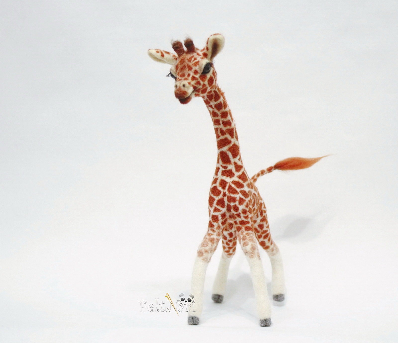 Шерсть 100%, шея, ноги и хвостик на каркасе, можно поворачивать и менять положение, чем он особенно привлекателен. Глазки бусины, покрыты акриловой краской и лаком придающим натуральный вид. Затонирован сухой художественной пастелью.