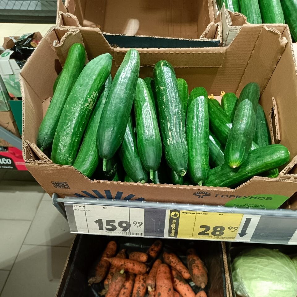 - огурцы 1кг - 150ккал (140руб)