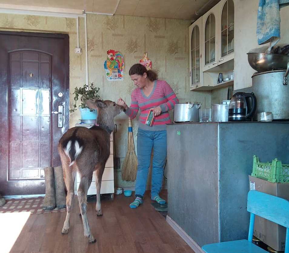 Необычайного сожителя обрела семья инспектора по охране природы из села Киевка Приморского края. Александр Василенко спас от верной смерти пятнистого олененка, которому было всего 2-3 дня от роду. Добродушный мужчина оставил сироту себе. И Пушок стал практически третьим ребенком в семье. Даже завтракает он вместе с людьми на летней кухне.