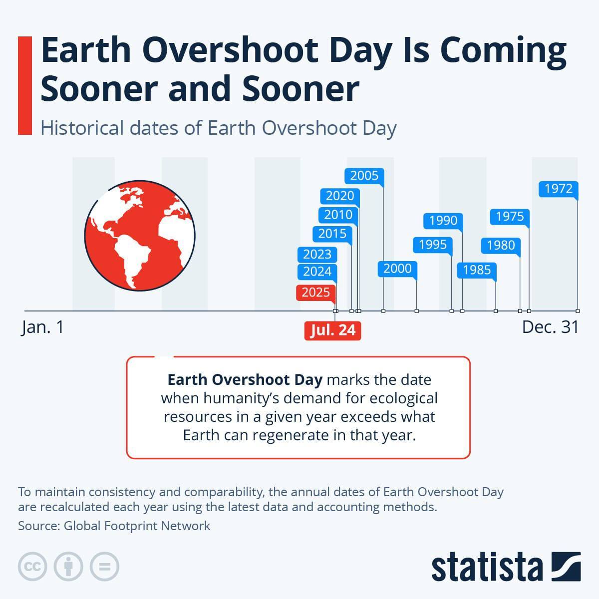 Openmindinvest 3 месяца назад Серия Макро Жители земли потребляют в 1,8 раза больше, чем Земля успевает восстановить На диаграмме даты по годам, когда наступает Overshoot day Макро. Статистика Ресурсы Ещё 0