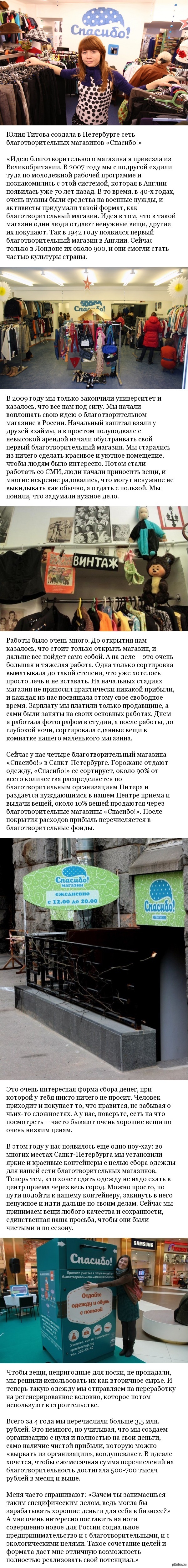371 Subbotnik 10 лет назад Жительница Петербурга открыла сеть благотворительных магазинов Проект "Гордость России" Россия Санкт-Петербург Юлия Титова Благотворительность Гордость России Длиннопост