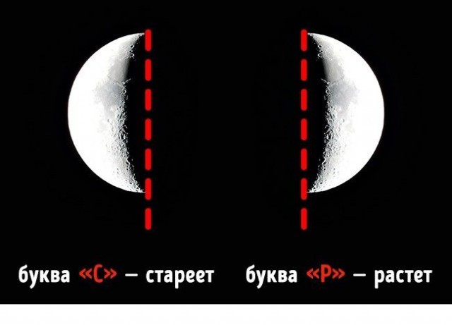 Чтобы объяснить ребенку, растет луна или убывает, попросите его «приставить» палец к полумесяцу на небе. Если получилась буква «Р», луна растет, если «С» — убывает.
